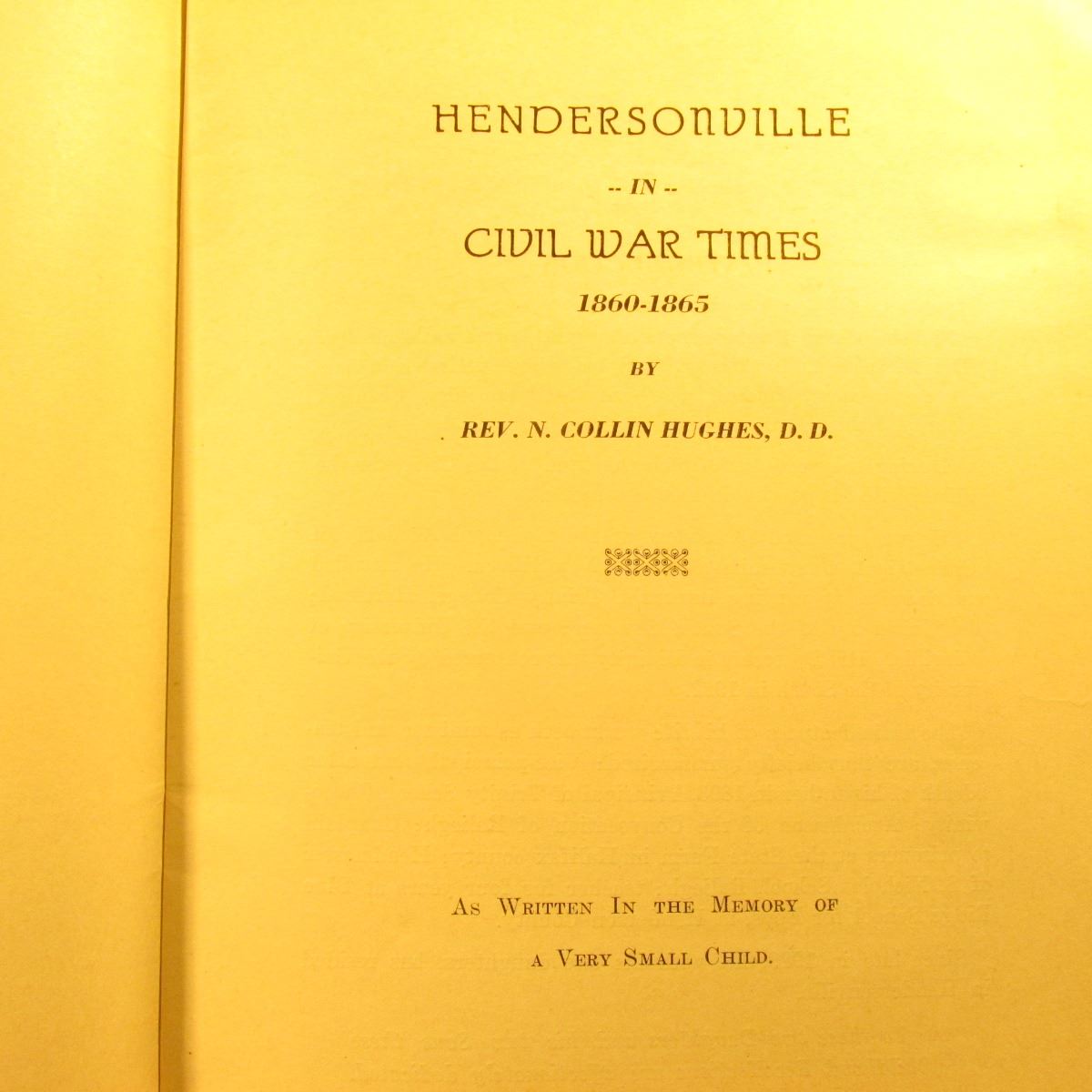 Civil War Booklet "Hendersonville in Civil War Times 1860-1863" by Rev. N. Collin Hughes, D.D. "As w