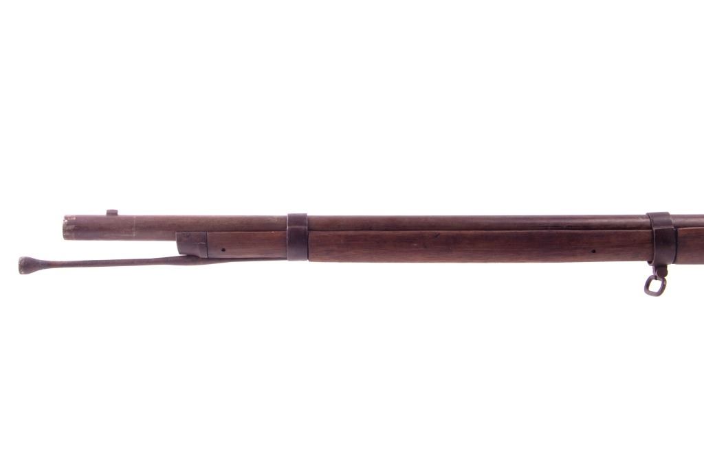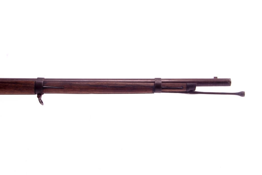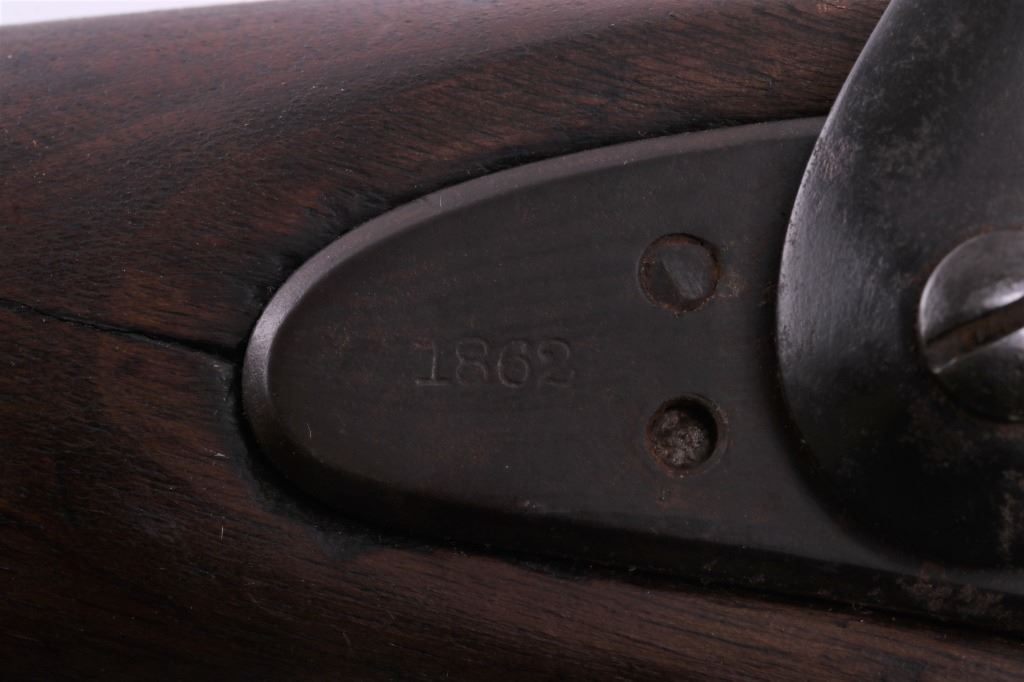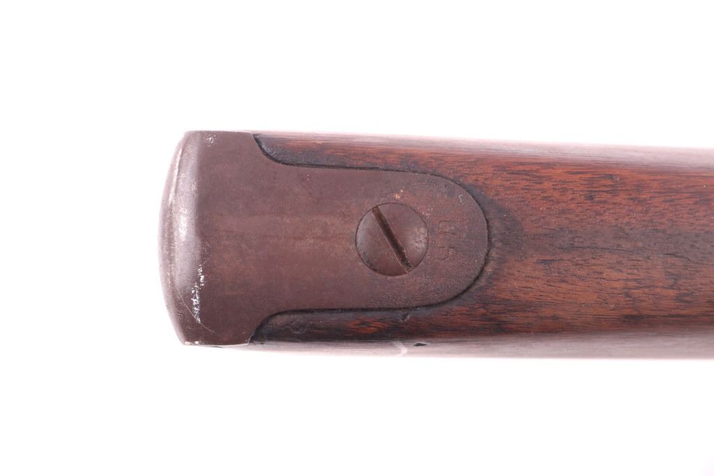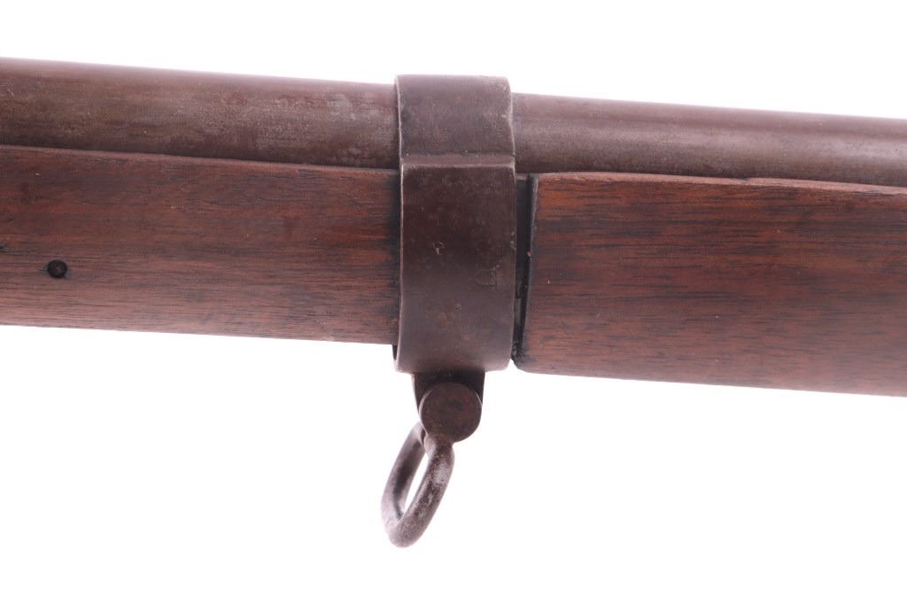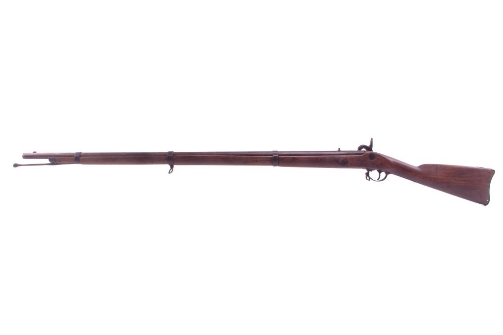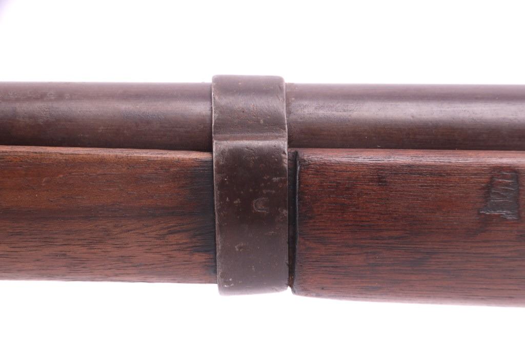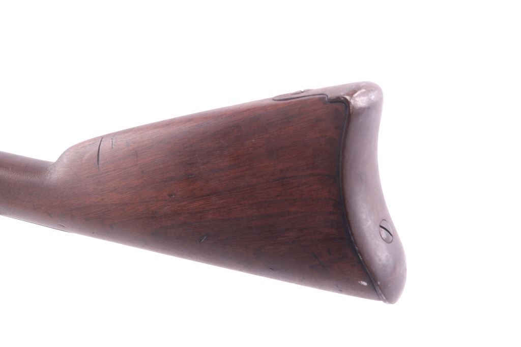 This is an immensely scarce and unusual C.D. Schubarth Model 1861 U.S. Civil War musket. This is one of only 500 known “U.S. / C.D. Schubarth / Providence (with Spread-Winged Eagle between the hammer and bolster) marked Civil War Model 1861 muskets to exist as documented by author and historian George Moller. This is a musket with an unusual and scandalous history including an immigrant, bribes, Congressional subpoenas, shame and eventual a failed business. The musket is dated on the lock plate 1862, along with the Spread-Winged Eagle between the hammer and bolster and under the bolster in three lines “U.S. C.D. Schubarth Providence”. It is also marked on the breech of the barrel “V/P”, on the flat of the left of the barrel breech “H”, “US” on the top flat of the original metal butte plate, and “U” on each of the three barrel bands. Casper Daniel Schubarth was born in Norway 1830 and apprenticed under a Norwegian gunsmith. He immigrated to the United States in 1850 and settled in Massachusetts, later opening a gunsmithing shop in Providence, Rhode Island in 1855. Schubarth brought on his brothers, Amos D. and James Y. Smith, as investors who later introduced him to Republican Rhode Island Senator James F. Simmons. He introduced his US Patent #32,895, an “Improvement in Breech-Loading Firearms”, which was turned down, and then bid to undertake the manufacture of US Model 1861 Rifle Muskets. Due to Senator Simmons, Schubarth received a contract for 20,000 US M1861 Rifle Muskets at $20 each, supposedly landing the contract due to Senator Simmons strong arming Secretary of War Cameron, who passed the order to General Ripley, who offered the contract to Schubarth on October 11, 1861, only one day after being denied for his breechloading design. The contract was a mixed blessing, as it was not large enough to cover the cost of tooling and production, so Schubarth’s partners pressured him to return to Washington and increase the contract to a more profitable number of arms. Schubarth, relying on Simmons’ help, obtained a larger contract for a total of 50,000 arms on November 26, 1861, along with an invoice from Simmons for $50,000, which Simmons considered his “commission”, an obvious illegal act. At this point, his brothers and financial backers considered this a bribe and abandoned the venture, leaving Schubarth with no investors and no ability to produce the arms and pay Simmons. James Smith, his brother had political aspirations himself and didn’t want the controversy ruining his career, which turned out to be a wise decision as he was elected the Governor of Rhode Island in 1862. On February 15, 1862, he formed the C.D. Schubarth & Company corporation with backing from new partners, James M. Ryder and Frederick Griffing. Simmons was so set on receiving his “commission” or bribe that he met with the new backers demanding his payment and left the meeting with two $10,000 promissory notes. Due to President Lincoln replacing Secretary of War Simon Cameron with Edwin Stanton and the Holt-Owens Commission Casper, Schubarth was subpoenaed before Congress. Schubarth, in his testimony, persuaded the elected officials to see that he entered into the morally incorrect, but not technically illegal, bribe agreement without nefarious intentions, blaming his foreign birth and lack of understanding for government procedure. They were much harder on Senator Simmons, who took advantage of a national emergency and an emigrant. President Lincoln signed a bill into law, which made accepting bribes from contactors as an illegal act punishable by prison and fine. Simmons resigned from the Senate. The order was decreased to 30,000 rifles, but Schubarth only delivered 500 by December 1862. There was another delivery of 950 in April of 1863 and a total of supposedly 9,500 between December 1862 and October 1863 (later finding that the number was likely lower as many of the firearms delivered were a 4th class of quality and rejected). Research by arms historian and author, George Moller, suggests that only about 500 of the Schubarth arms were delivered with C.D. Schubarth marked lock plates, with the balance of the guns being marked either by Providence Tool or Alfred Jenks and, later, Norwich Arms Company. Overall, this is an exceptionally rare example of US Model 1861 Rifle Musket by C.D. Schubarth, with an estimated 500 being marked as such and even fewer still inexistence today. With a total of slightly more than 448,000 contact US M1861 rifle muskets delivered by contractors between 1862 and 1865, the Schubarth produced guns represents only about 2% of all those guns and the C.D. Schubarth marked rifles only account for 00.1%, or 1/10th of 1%, making this one of the most scarce and storied Civil War Model 1861 muskets ever produced. A Schubarth example is missing from even some of the most advanced Civil War musket collections and museums and is sure to be the prize of any collection. This example shows dark metal blue coloring with crisp stamping and clean wood. The metal all appears to be the original bluing and patina (please use your own judgement for condition) and the wood appears to have been cleaned or refurbished over its 159-year age. The rifling has not been entirely inspected and is smoothed out. The firearm was tested and fired without a ball and was in functioning condition. NAAC makes no guarantee of the safety of shooting such an old firearm. Antique Firearm requires no FFL or NICS background check and can be shipped directly to buyer. The musket is accompanied with a Watervliet Arsenal stamped leather sling, a later addition.