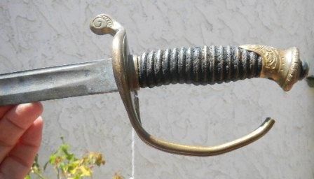 Civil War Calvary Sabre. It is U.S. 1860. The sabre is Approximately 37 x 5 inches. No visible maker's name. Engraving on the blade states U.S. on one side and the other side says E Pluribus Unum. The handle is broken and does not attach to the butt plate and it has several nicks on blade and no scabbard. Shipping $18.00