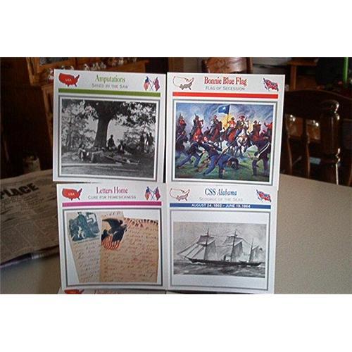 Featuring 12 Different information, picture cards describing 12 different events of the Civil War. 1. (Amputation) Saved By The Saw: 2.(CSS Alabama) "Scourage Of The Sea." 3. (Bonnies Blue Flag) "Flag of Seccession". 4. (Letters Home) "Cure For Home Sickness". 5. (Unofficial Truces) "Fraternization With The Enemy". 6. (Battle Of Fredericksburg) "Action At The Stone Wall". 7. (Robert E. Lee) "The King Of Spades". 8. (Battle Of Gettysburg) "Pickett's Charge". 9. (Johnny Clem) "Drummer Boy Of Chickamauga". 10. (54Th Massachusetts Regiment) "Northern Black Troops". 11. (CSS H.L. Hunley) "First True Submarine". 12. (Fort Sumter) "The War Begins". All cards are in good condition.