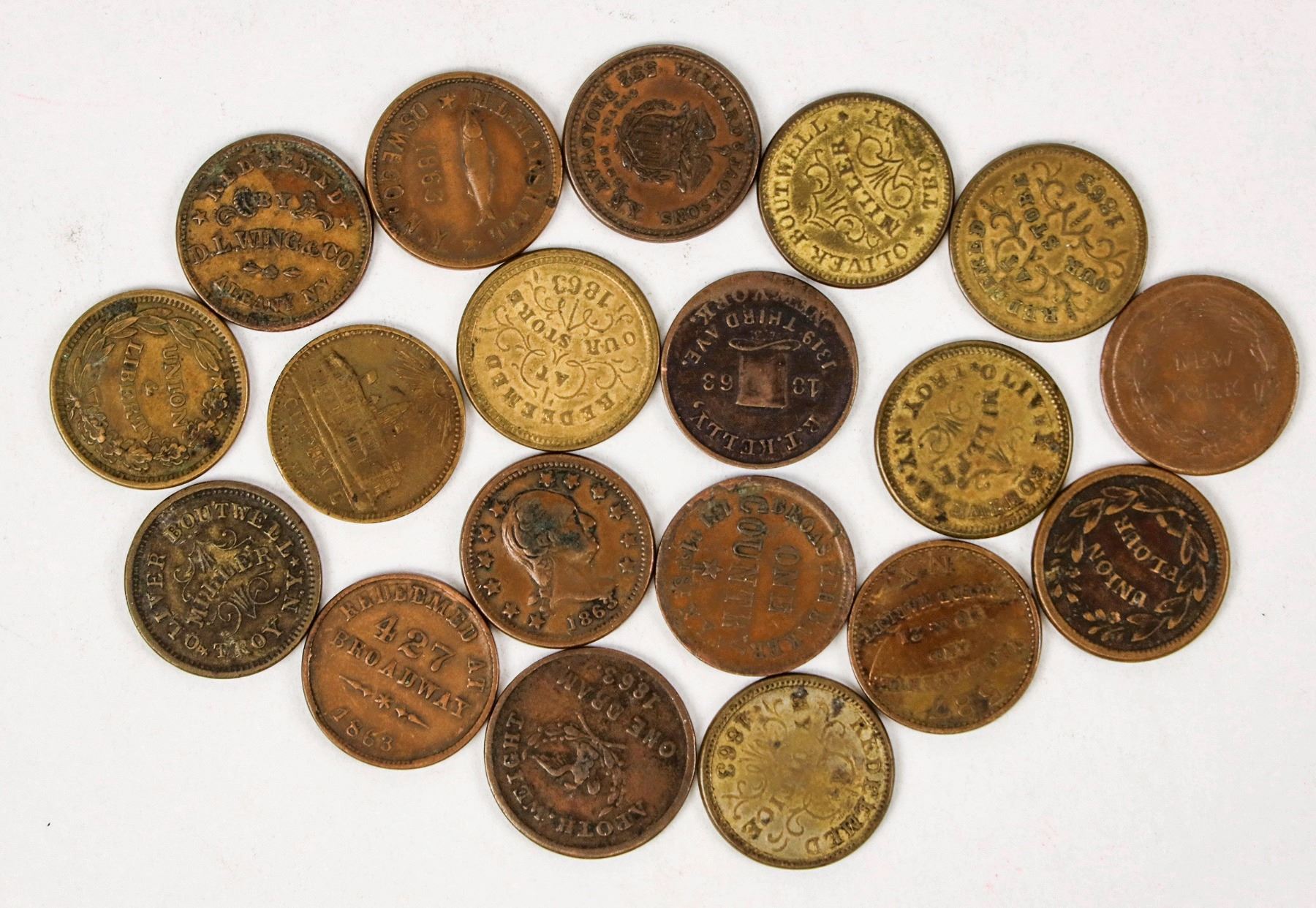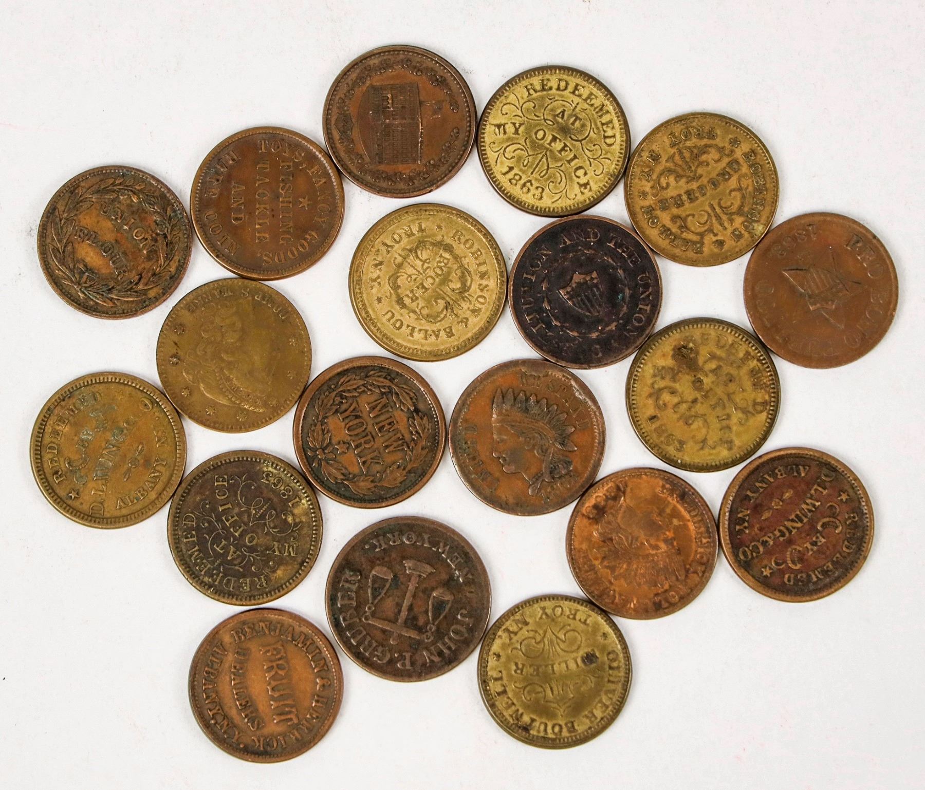 New York collection: 19 different tokens, including four varieties of Boutwell (Troy).
