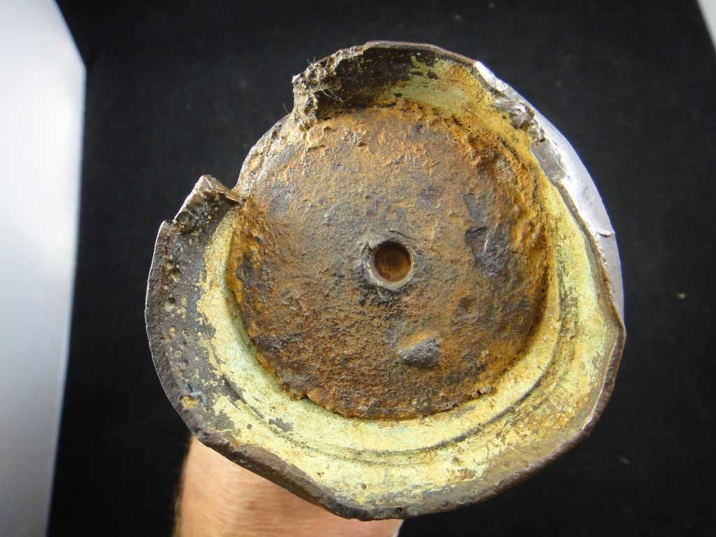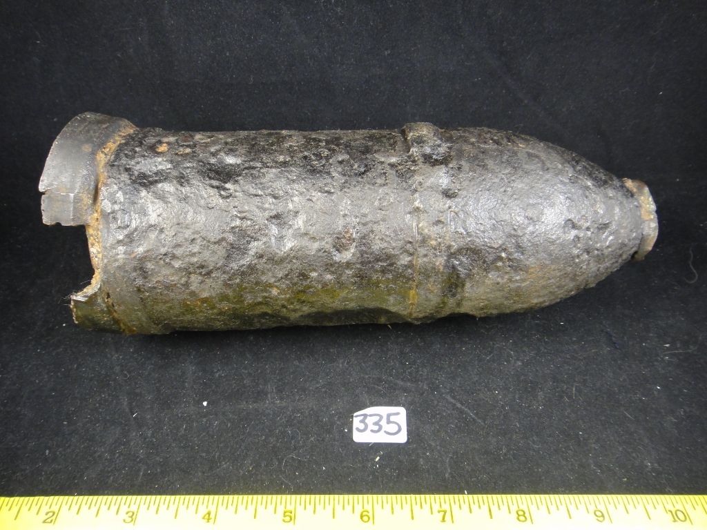 Fired and defused. Rare southern shell with brass sabot and fuse still intact. Found in Virginia.