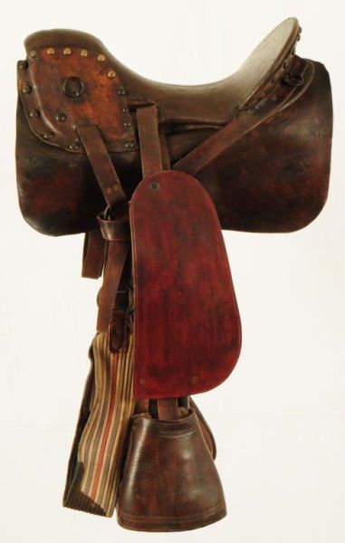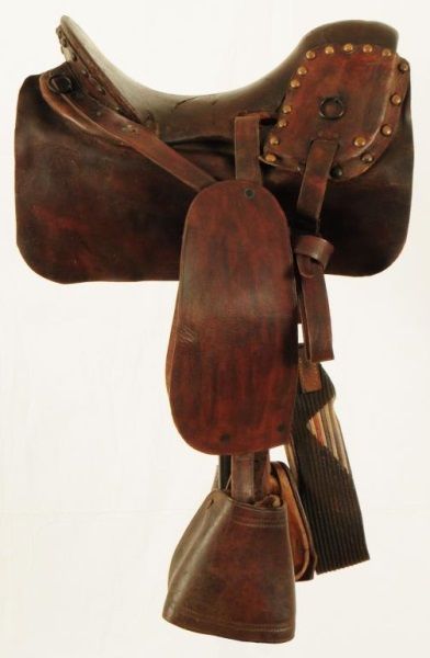 Civil War Confederate saddle. Brass tacks. Fenders are replaced. Very scarce.