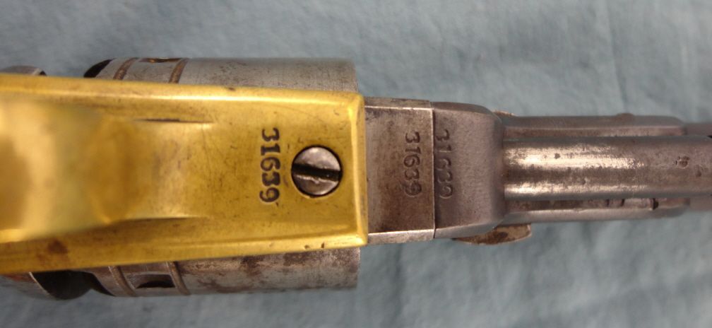 Antique. #31,639; 44cal, MFG 1862 7 1/2" bbl. Visible #'s match. Cylinder & trigger appear to be replacements.