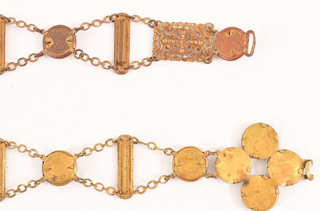 Indiana button necklace 25" in length. Massachusetts button necklace 27" in length. Other pendant with Montana & Massachusetts buttons measures 2" x 4".