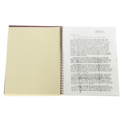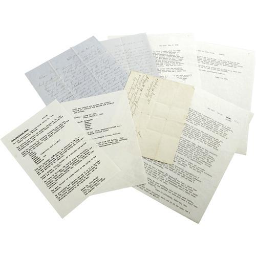 <B> Civil War Letters Archive. </B></I> This lot consists of twenty letters, from or to a Garland B. St. John. Writing to him are his parents and siblings. The St. John family lived in Brooklyn, Michigan. Other towns mentioned in the letters are Columbia, Henrietta, Napoleon, Jefferson, Grand Blanc, Dearborn, and Dearbornville. One letter dated May 20, 1864 reads in part, "<I> We are all well, I think, at present and are hoping to hear of a victory at Richmond ere many months. I would give a great deal to hear that glad news before my time is out. At least I hope that the war will end soon after. Well, I must say that I am entirely at loss what to write so will be you goodbye for the present, hoping you will remember you wayward son.</B></I>" A second letter from Garland's mother recounts some battle information, it reads in part, "<I> Yours of the 6th is rec'd and our anxiety for your safety is quieted by the glad news of your preservation through the awful scenes before Murfresboro… But O the scenes in Rosecrans' Main Army. Had he not been a 2nd Zach Taylor all would have been lost, whipped once or twice and didn't retire before him. We may expect the Rebels will fight desperately in every battle as they are driven to the wall. A great many faint-hearted skulks here at the North are saying, 'You never can subdue the South.' All we ask of such is to stand out of our sunshine, and as sure as there is truth and justice in the earth we'll conquer that southern soil and bring it under the stars and stripes; whatever may become of the inhabitants it matters little. If they were swept from the earth and all the Northern sympathizers with them, the country will be settled with a population that will bring forth fruits meet for a Republic.</B></I>" <BR><BR> Garland served in the 1st Michigan Engineer regiment until he was discharged in October of 1864. His main occupation seems to have been bridge building, which he mentions often in his letters. This lot features everything from wartime accounts to the spiritual ponderings of a soldier at the front. It has everything a Civil War collector craves. Also accompanying this set of letters is a spiral bound document that explains the genealogy of a Halstead family. <BR><BR> The letters are all in very fine condition; they have been preserved magnificently along with full transcriptions of each letter. This lot is a treasure trove of research.
