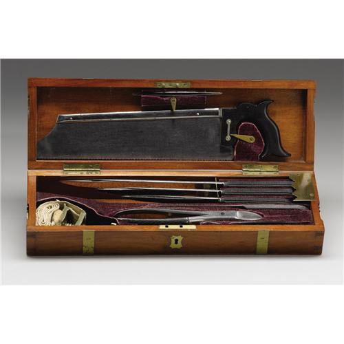 <B>Civil War Medical "Field Amputation Kit"</B></I> made by J. Steven's & Son London. This rare medical kit could have been used by a Confederate Surgeon as the majority of Confederate Surgeons Medical kits were, in fact, British made and ran the blockade into the Confederacy to be used on the battlefield. In original brass mounted walnut case completely original and all surgical instruments intact, this is a showpiece.<BR><BR><b>Shipping:</b> Clothing & Costumes (<a target="_blank" href="http://www.heritageauctions.com/common/shipping.php">view shipping information</a>)