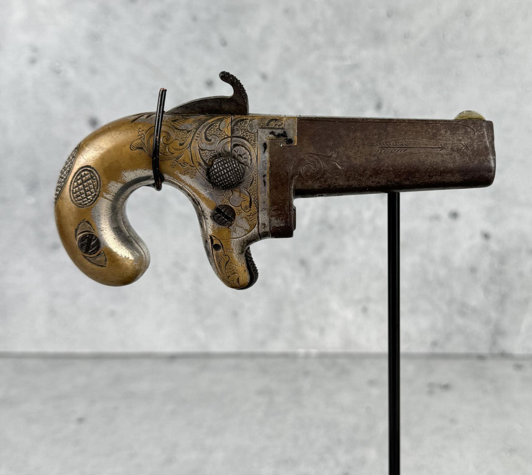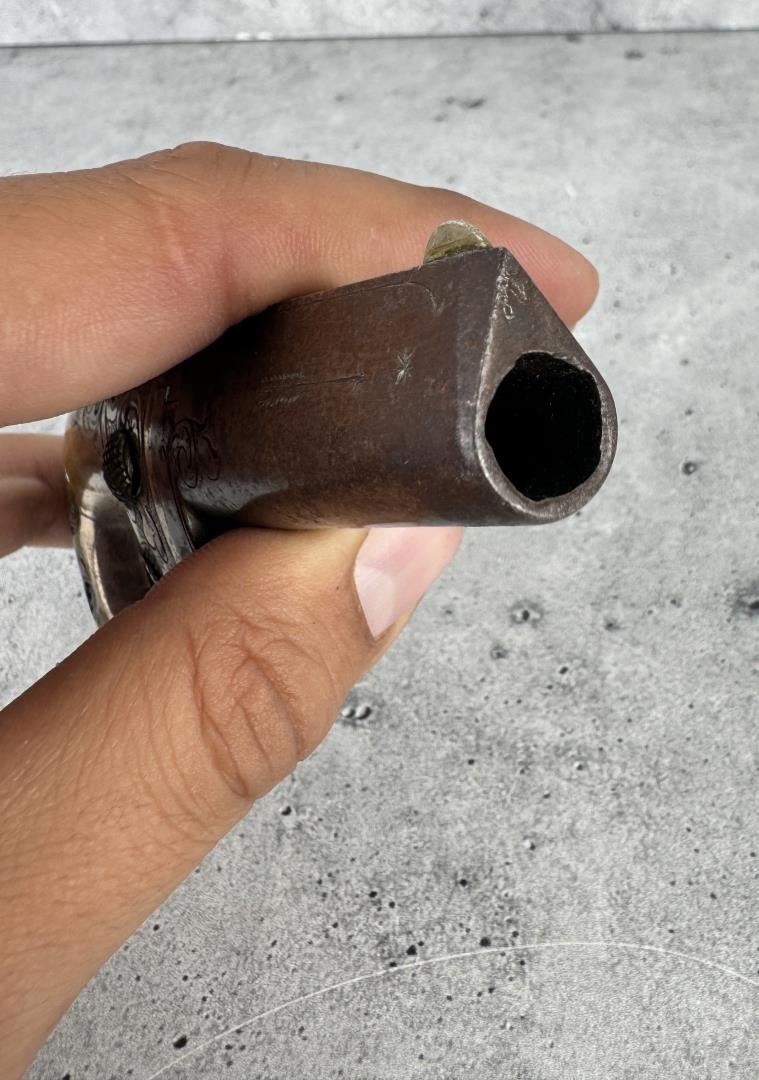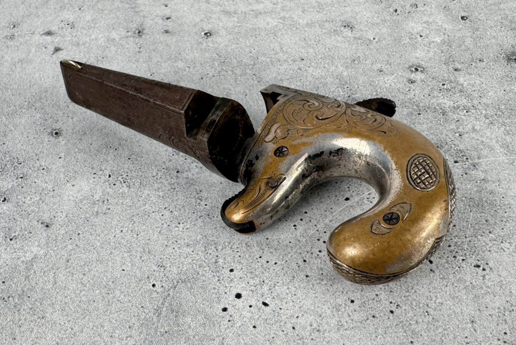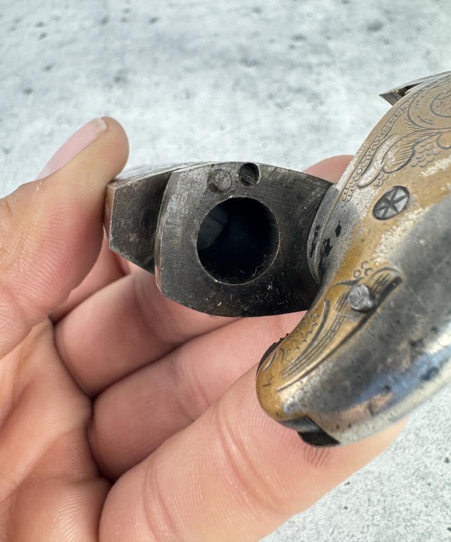 This is the fifth variation. 5" long by 2 1/4" wide. barrel is 2 1/2". Doug Eberhart in his most recent text on Moore, National, and Colt derringers states that this blue and silver combination is only seen on 10-15% of survivors. Antique, Does Not Require FFL Transfer, No International Shipments.