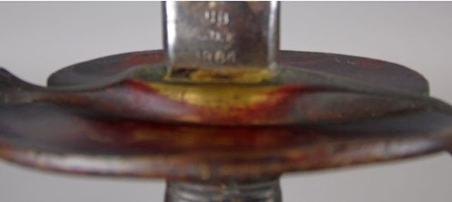 proofed with 1864 date, all brass hilt blade shows 85% bright nickel with scattered erosion and nicks to blade, no scabbard.