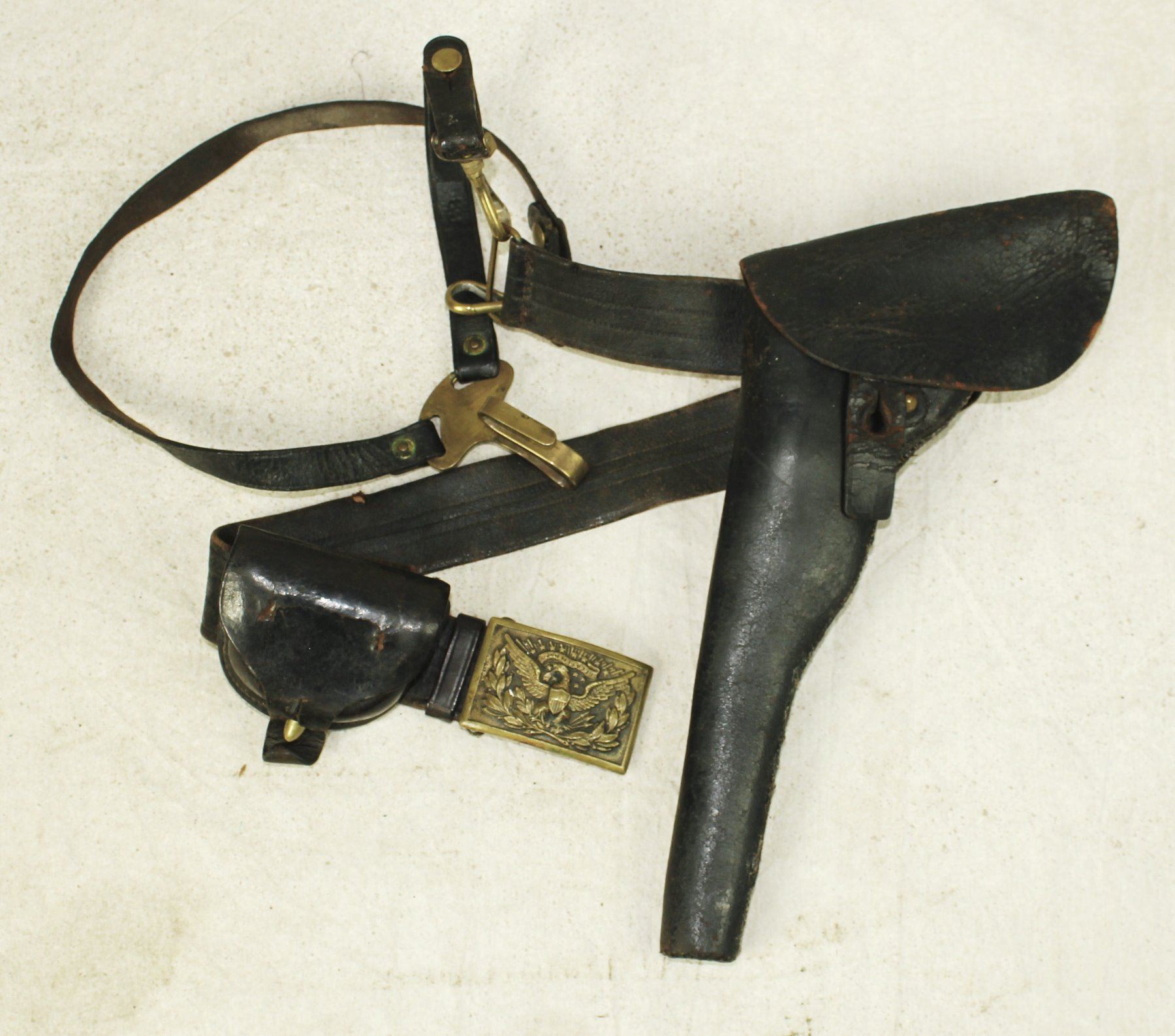 A seldom seen complete Indian Wars officer's gun rig that includes sword hanger, with rich dark color and in clean condition.