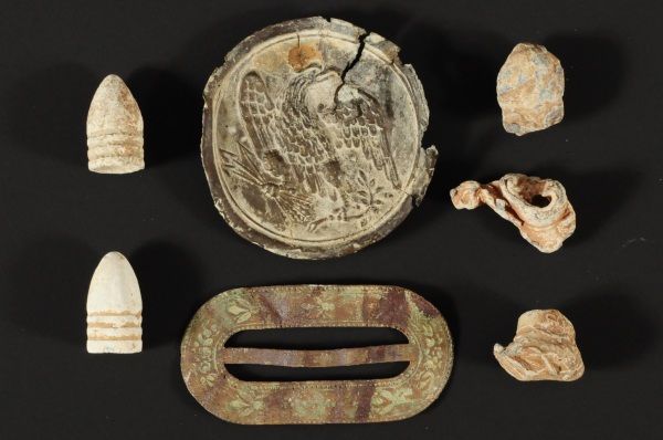 Battlefield dug Civil War Relics. 2 buckles & 5 bullets.