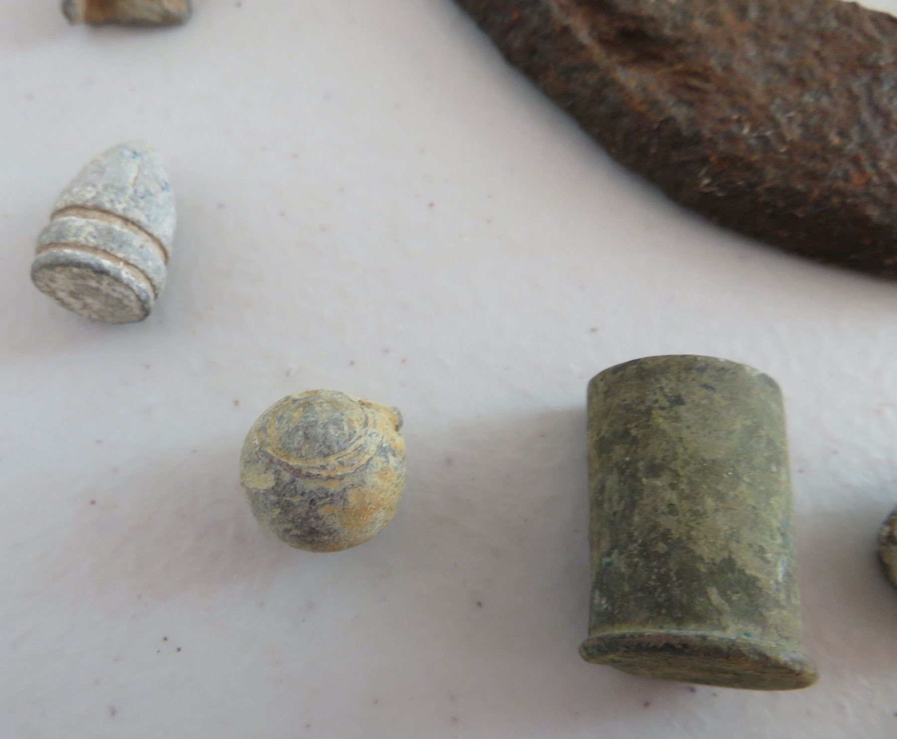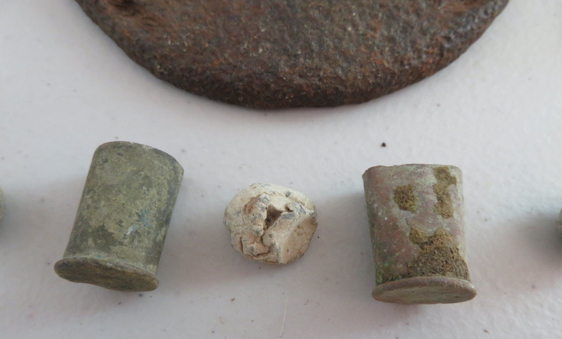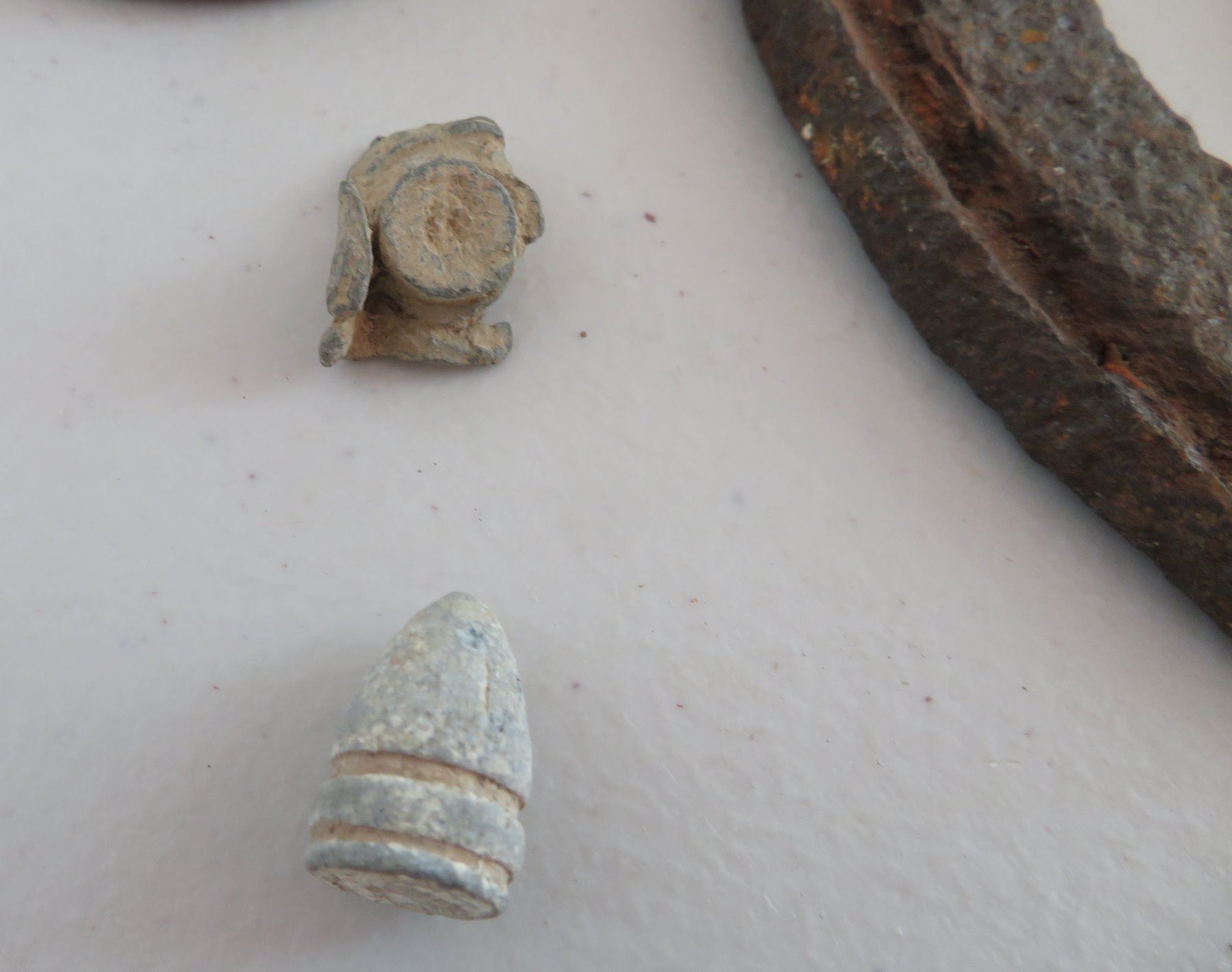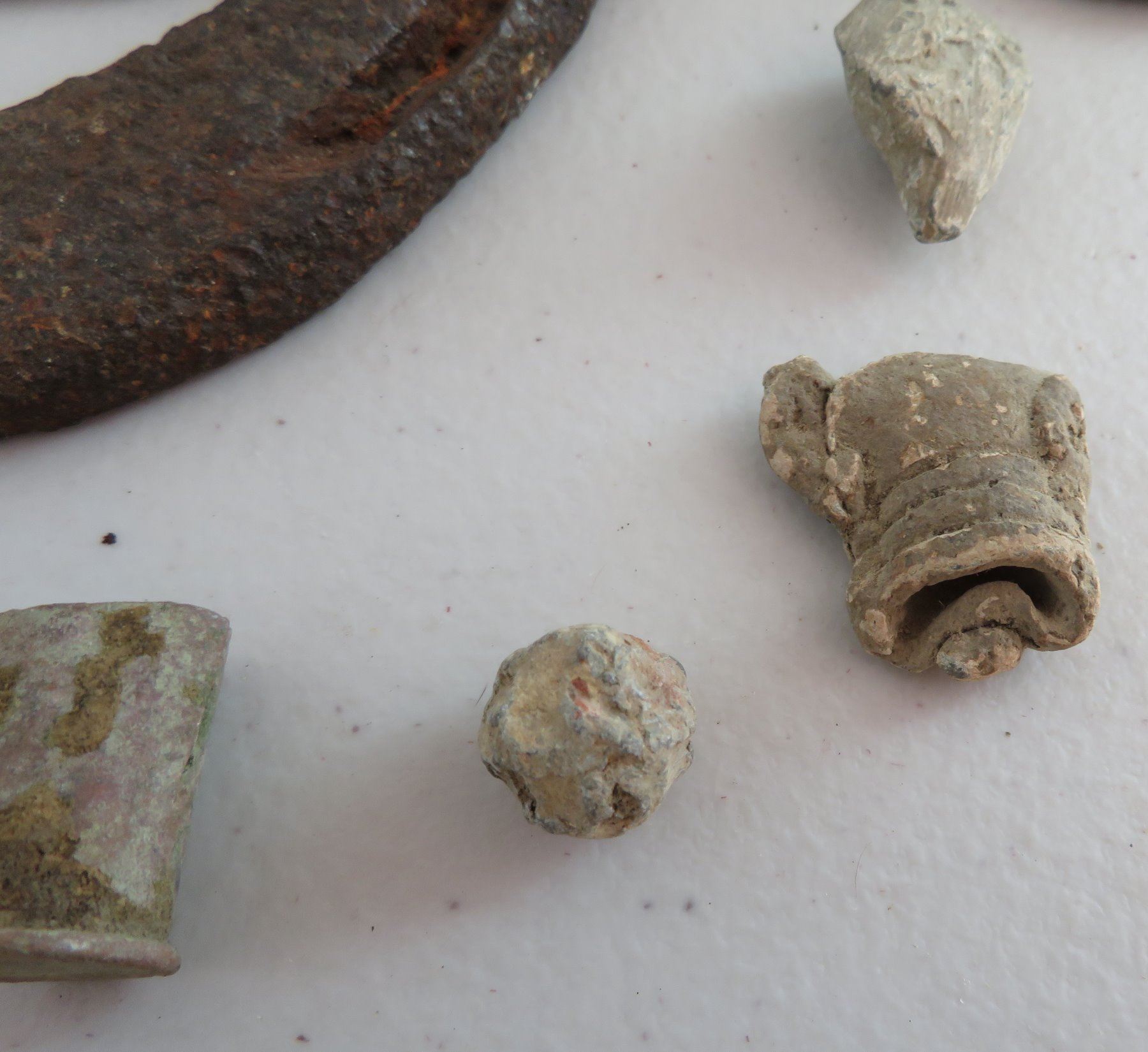Civil War Relics, c. 1860s. Made of steel, iron and other alloys, the horseshoe measures 6" x 5 1/4". Kentucky. Found on private land in the Midwest. Horseshoe, spent ammo, buckles, etc. Condition: Good, heavy patina, see images. Shipping: $18.50 w/insurance and signature.