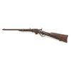 Civil War Spencer Model 1865 Lever Action Repeating Saddle Ring Carbine, #29168, .50 RF cal., 20'' round barrel fitted with a block-blade front sight and dovetailed tall open rear sight (a later replacement); steel receiver is marked at top of breech ''Spencer Repeating Rifle/Pat'd. March 6, 1860/Manuf'd. at Prov. R.I./by Burnside Rifle Co.'' in four lines lengthwise, ''Model/1865'' vertically, and mounted with a steel sling bar and ring on left side; serpentine operating lever, single spring-retained barrel band, carbine buttplate with hinged door opening to tubular magazine that feeds seven cartridges to chamber through buttstock; oil-stained walnut forend and buttstock fitted with a sling swivel on belly. Mfg'd ca. 1865-66. Condition is good, the barrel showing overall light rust, the balance of the metal a gunmetal gray with silvered-out case hardening. Stocks with deep scarring, cracks and losses, but sound. Action functions smoothly; 6-groove bore is fairly smooth with sharp rifling. Est.: $1,500-$2,000. (Antique)