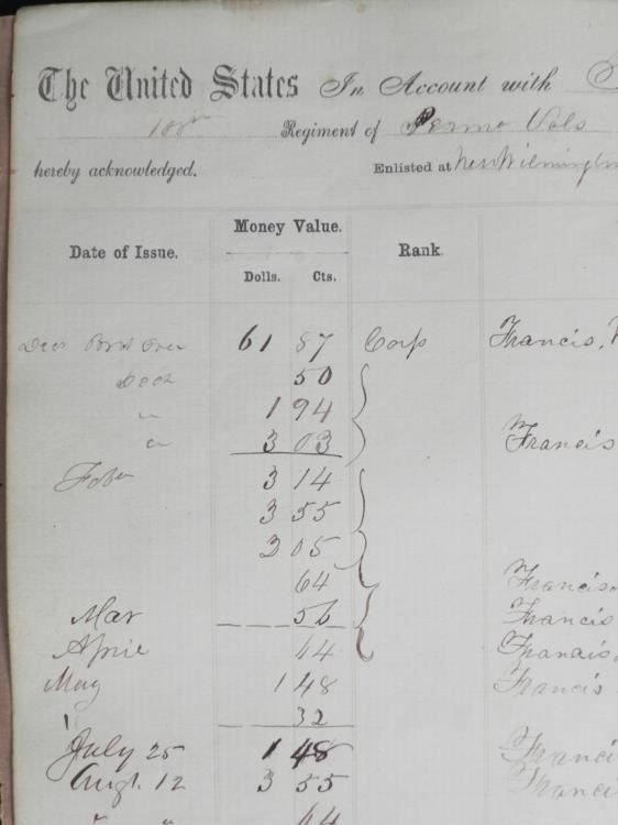 This is an original U.S. military document from just after the Civil War. It is dated August 24th, 1867. The document is for a soldier, and it is a stipend for clothing worn during enlistment. The dates of issue are listed as months and dates. There are monetary values, and signatures of witnesses as well. Most of the document is hand inked. The paper size is 10 x 15 1/2 inches. The condition is very good for its age, with normal aging along the edges. It is boarded, and bagged and well preserved. This is a great historical piece, showing the organization and documentation of the very young U.S. military. This is a little figure of Garfield on the campaign trail, and he looks quite stately and then thumbs his nose at the opposition! The arm slides out subtly to put forth the surprising expression. This piece has great detail on either side, with Garfield's name marked on his tall hat. It appears to be brass, and is 1 1/2 inches tall. Its condition is excellent for its age, and it functions smoothly. The hole on top is for a chain, to be worn as a charm, or pin.This is a fun U.S. presidential campaign item, and it will be a treat for any political collector.