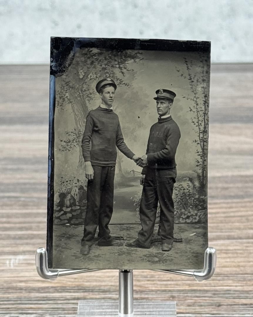 Shirts have visible but indiscernible writing. 3 1/2" by 2 3/8".