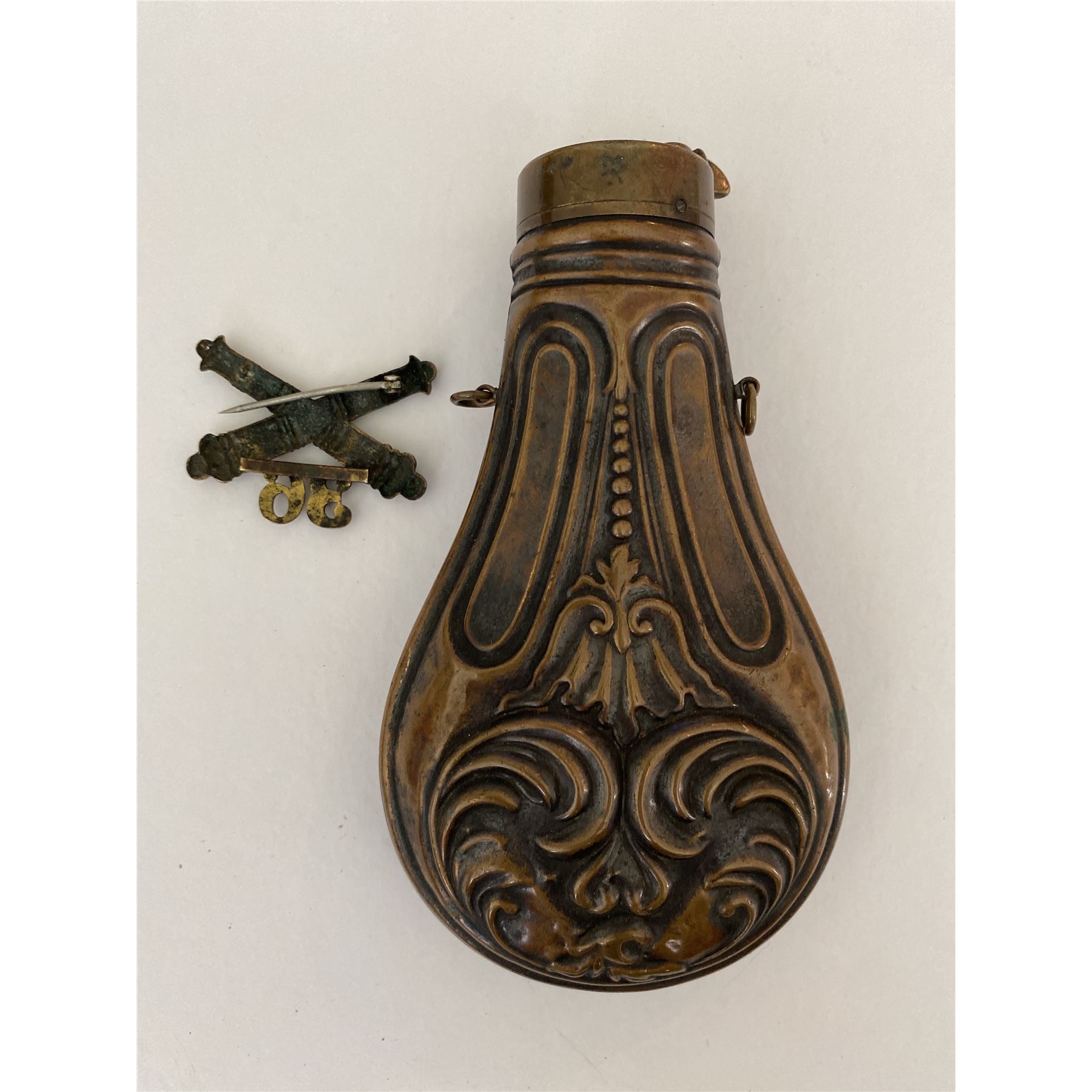 Civil War Union Arm gun powder horn flask and infantry uniform pin