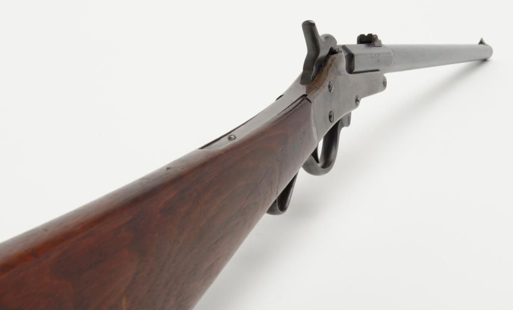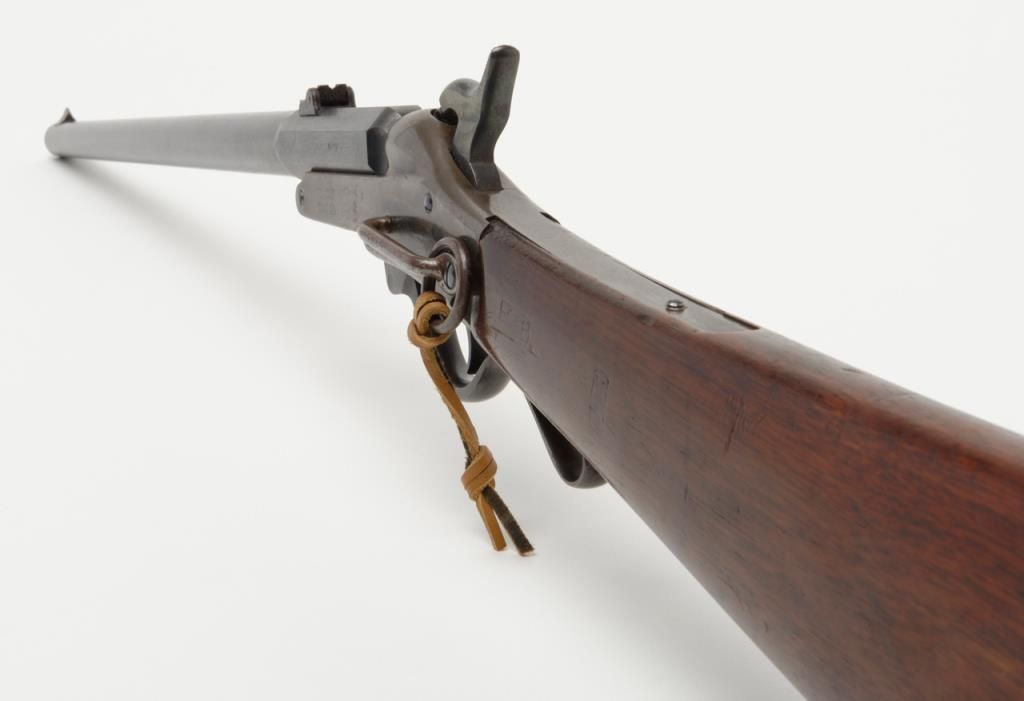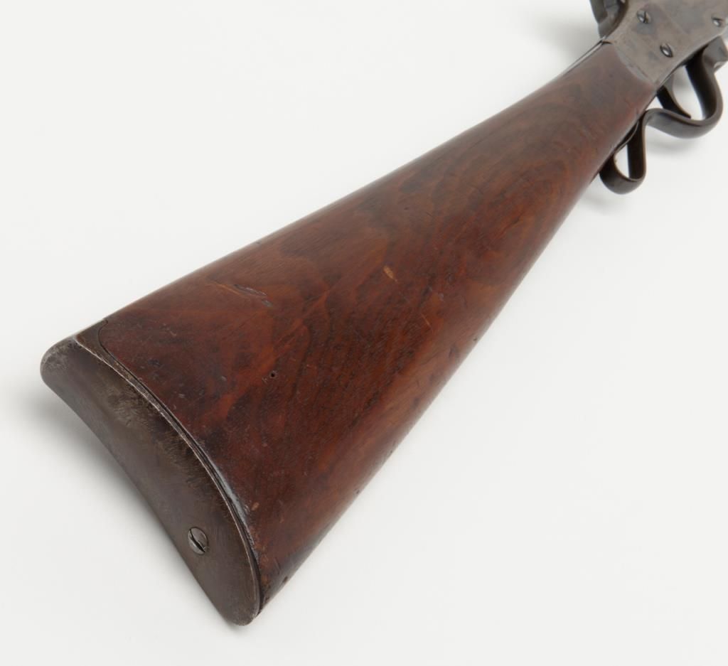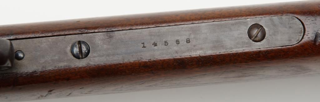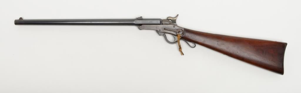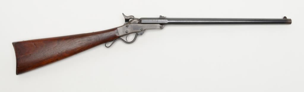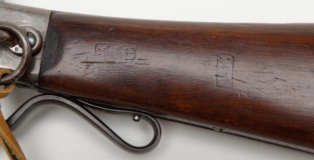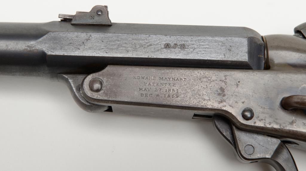 Civil War era Maynard SRC .50 cal., 20” barrel, blue and case hardened finish, wood stock, #14568 in overall fine to near excellent condition showing approx. 97% original blue on barrel and approx. the same amount original case colors onthe receiver although slightly muted in some areas; crisp action, minty bore, clear markings and inspector’s initials; the wood stock is fine with two crisp inspector’s cartouches and some minor old mars and scratches from storage.(Antique). Est.: $2,000-$3,500.