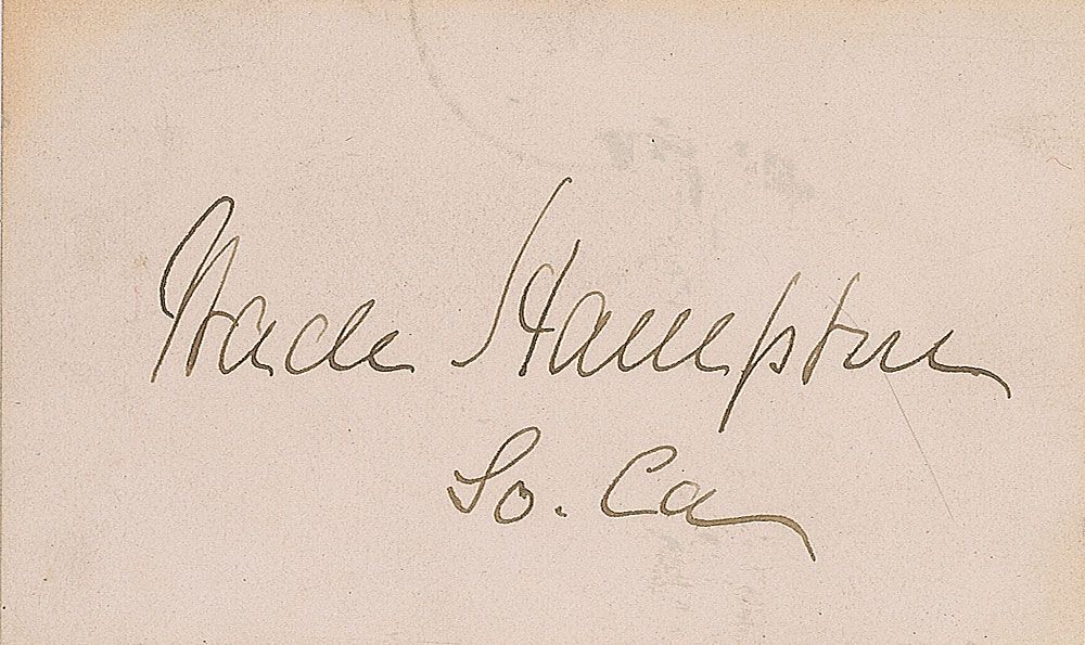 Wade Hampton: Ink signature, “Wade Hampton, So. Ca.,” on an off-white 3 x 1.75 card. In fine condition, with a light crease to the top.