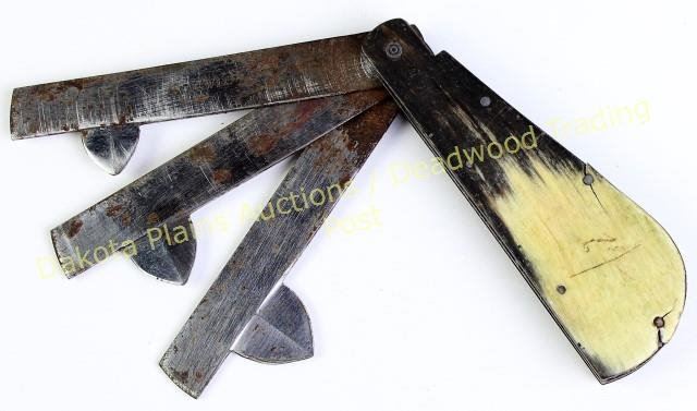 stamped on the first blade of three, nice original three pinned horn scales, 3" long folded up. Est. 50-100