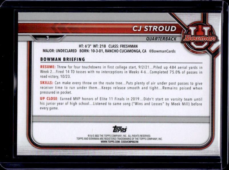 Cj Stroud 1st Bowman 2022 Bowman U #3