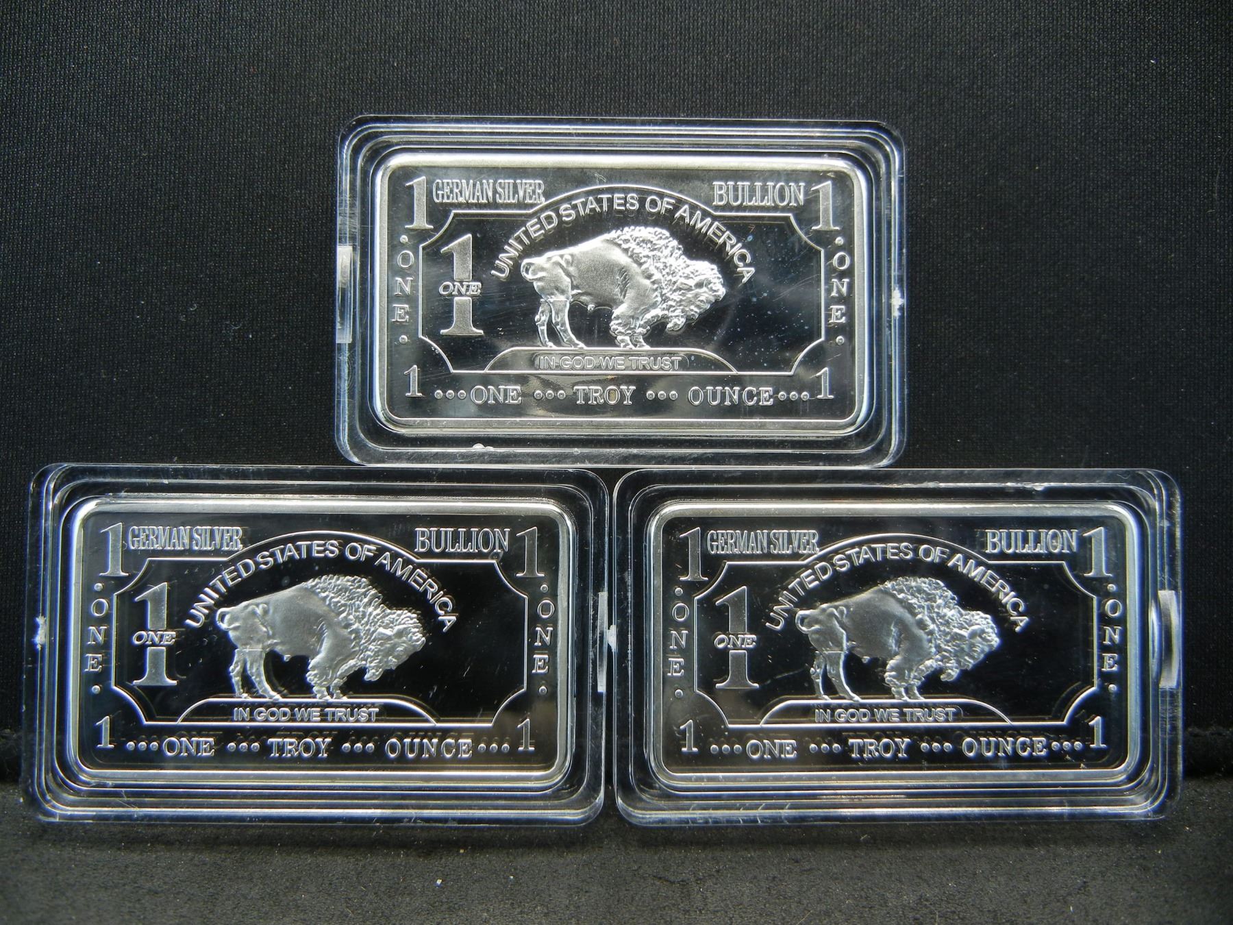 Clad 3 One Troy Ounce German Silver Buffalo Collector Bars Clad