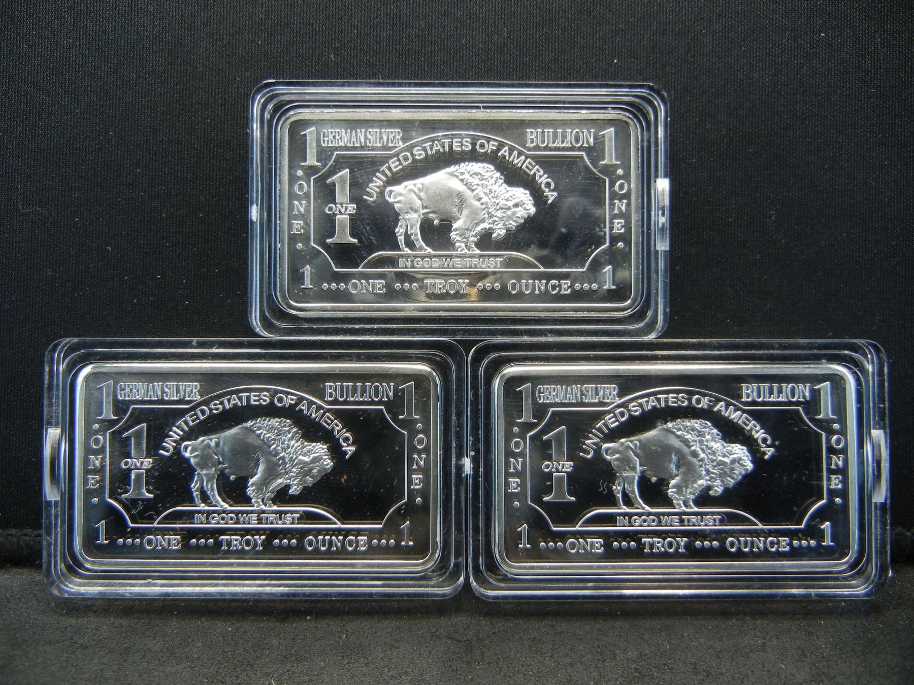 Clad 3 One Troy Ounce German Silver Buffalo Collector Bars Clad