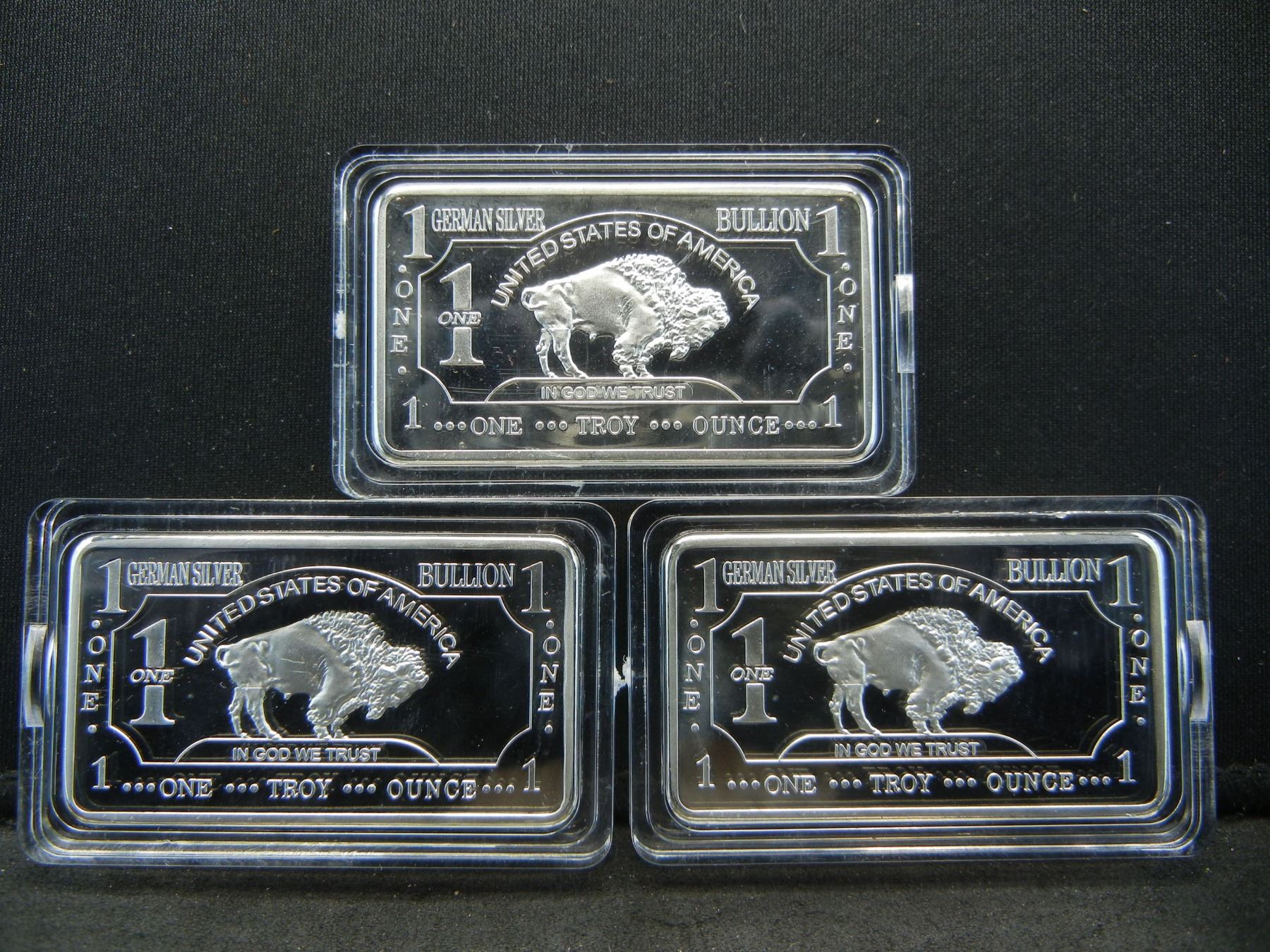 Clad 3 One Troy Ounce German Silver Buffalo Collector Bars Clad