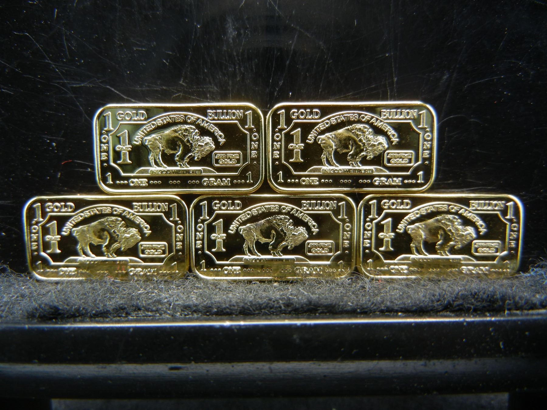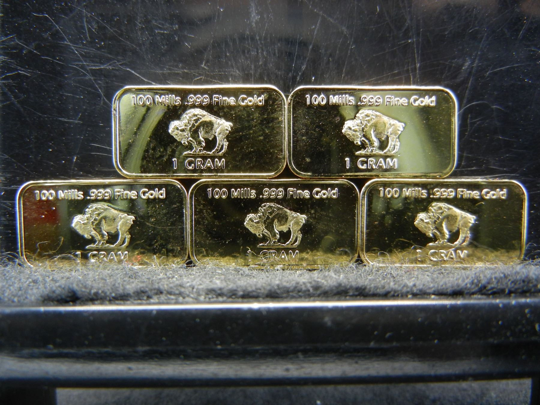 Clad 5 One Gram 100 Mills .999 Fine Gold Buffalo Collector Bars Clad