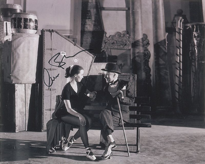 Two satin-finish 10 x 8 photos of Bloom with Charlie Chaplin in Limelight, each signed in black felt tip by Bloom. In fine condition.