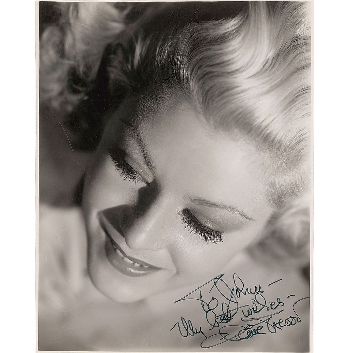 Glossy 7.5 x 9.5 close-up photo of Trevor, signed and inscribed in black felt tip, “To John—My best wishes, Claire Trevor.” In fine condition, with trimmed edges.