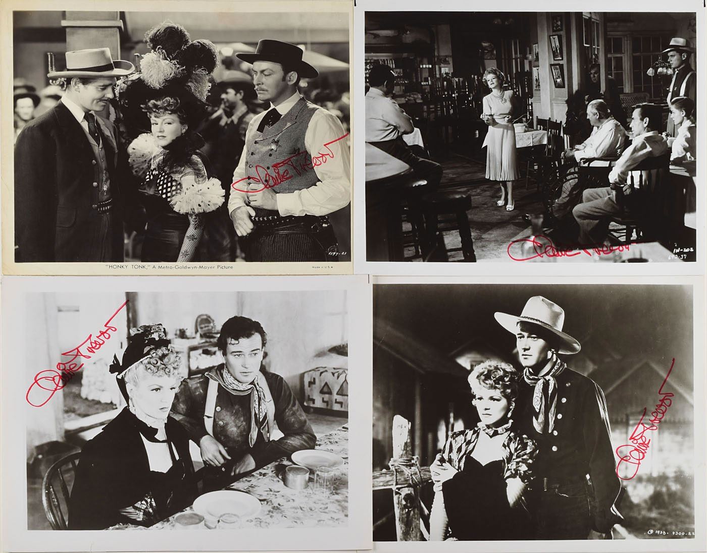 Four glossy photos of Trevor appearing in the films Key Largo, Honky Tonk, and Stagecoach, each approximately 10.25 x 8, each signed in red felt tip by the Oscar-winning actress. In overall fine condition, with scattered light creasing to the Honky Tonk scene.