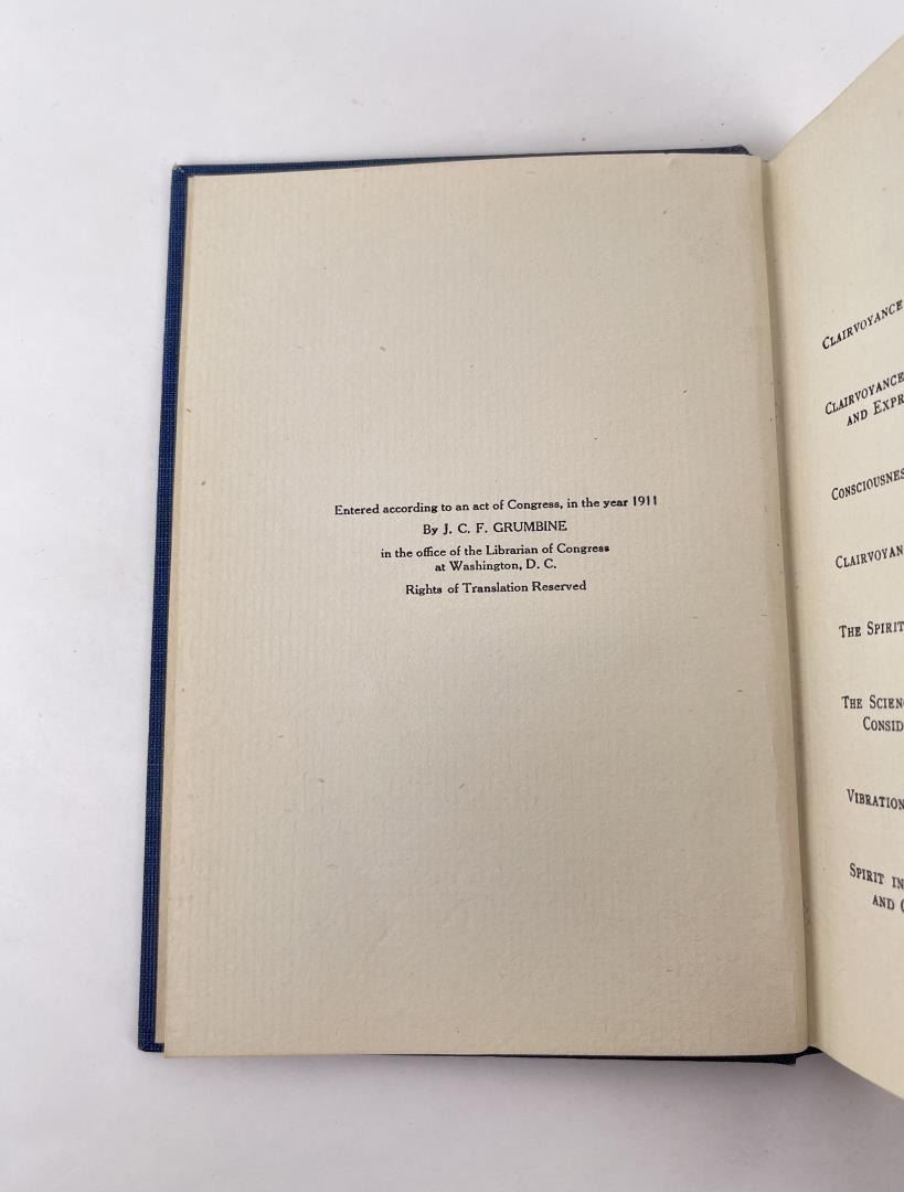 The System of Philosophy Concerning the Divinity of Clairvoyance. JCF Grumbine. Fourth Edition. 1911