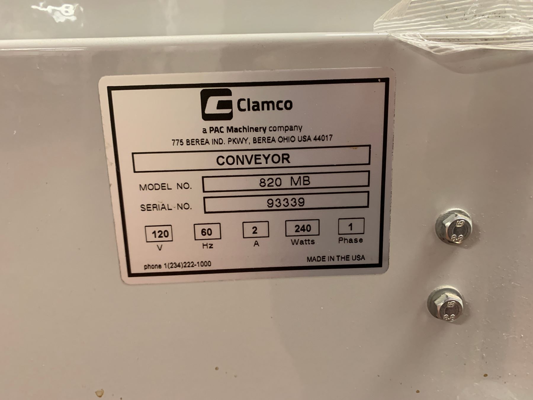Clamco Heat Shrink Tonell and a Conveyor -Model: 820 MB