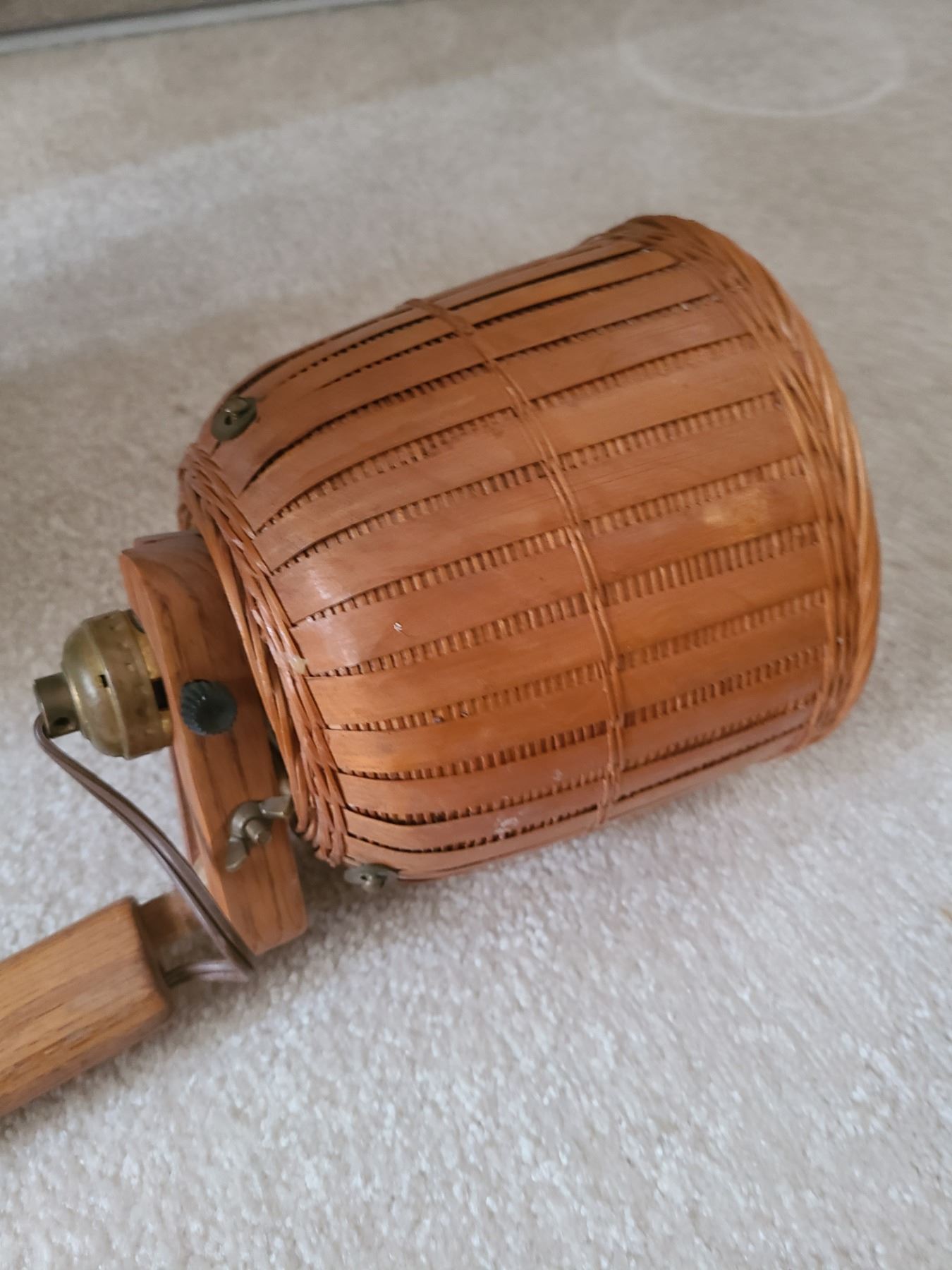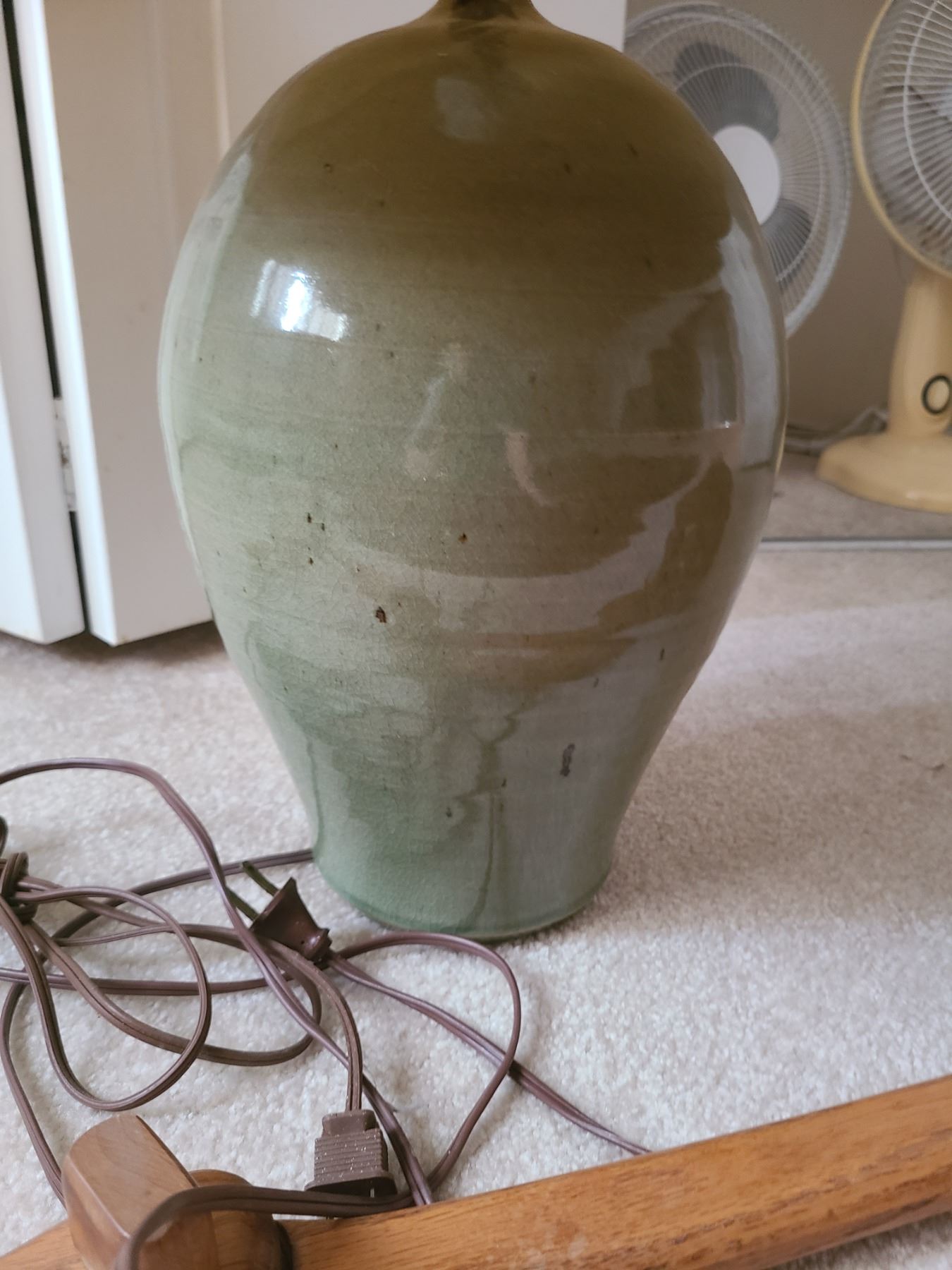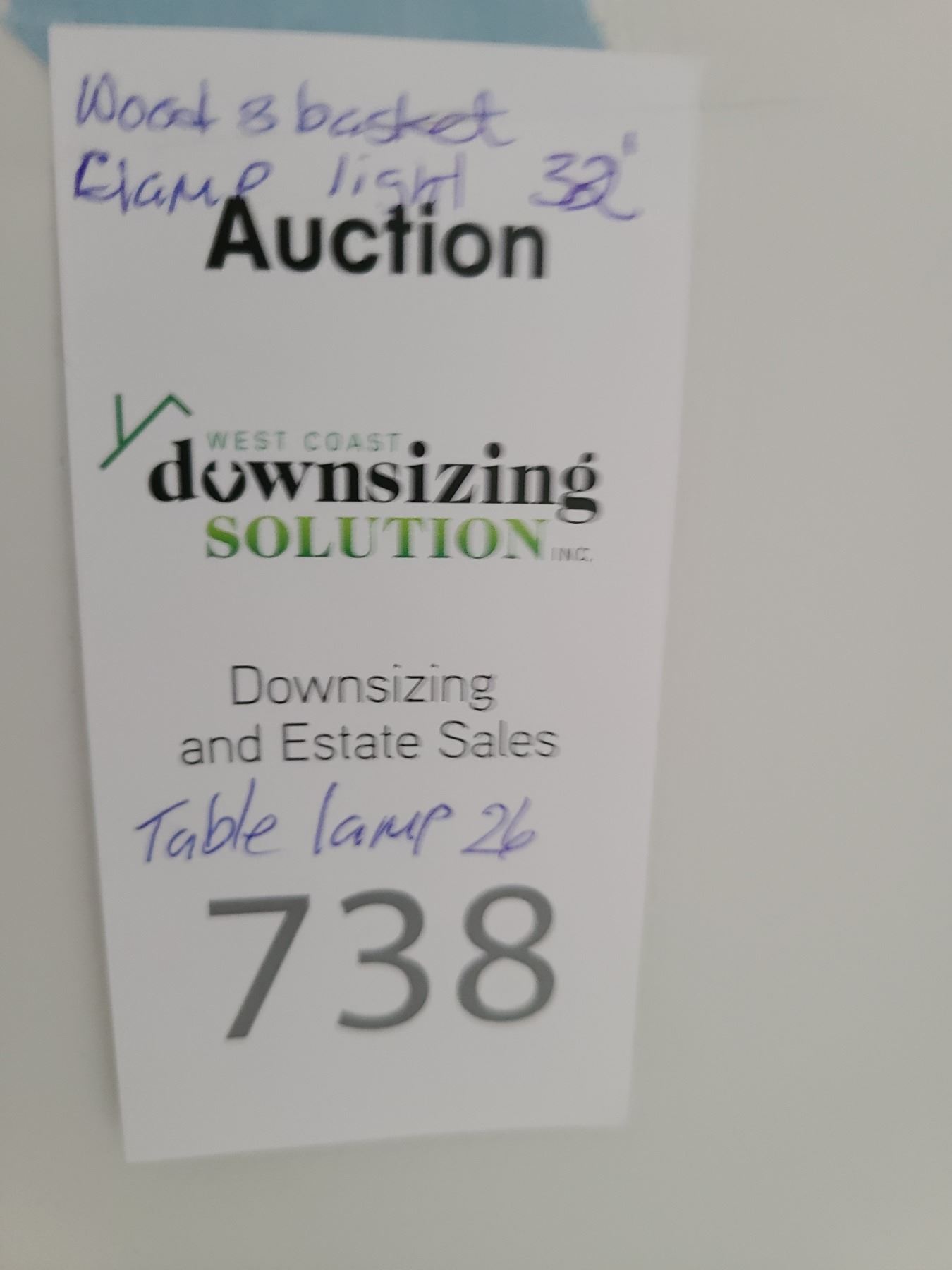 Wooden clamp style table lamp and table lamp included. Pickup at 9 am.
