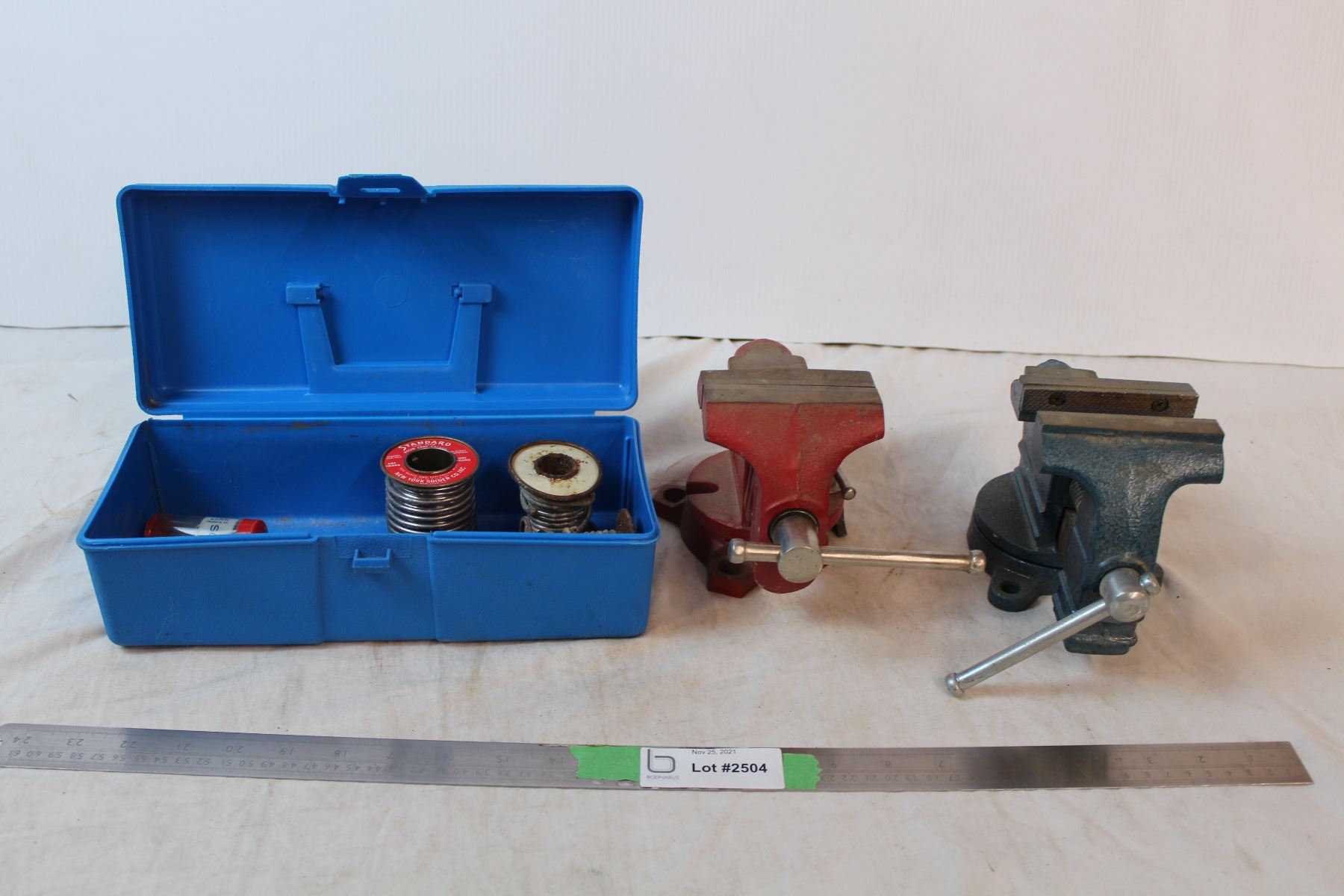 Clamps on rotating bases, soldering supplies