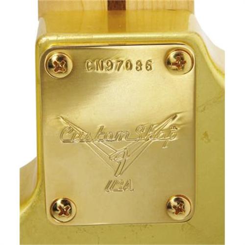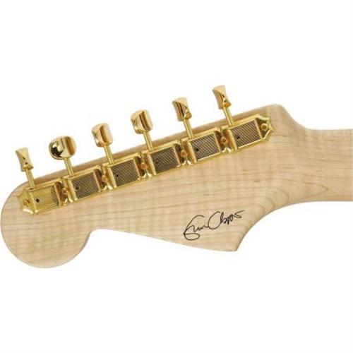 <B>2004 Eric Clapton Limited Edition Gold Leaf Fender Stratocaster.</B></I> In 1996 Fender contacted Eric Clapton asking him if he was interested in creating a guitar in celebration of Fender's 50th anniversary. Clapton obliged, requested a '50s style Strat finished in gold leaf. The results were stunning, and Clapton used the guitar as his main stage instrument in 1997, displayed for over two years at the Rock and Roll Hall of Fame, and sold it in his famous Crossroads Guitar Auction in 2004 for $455,000. That same year Fender produced a limited reissue of 50 Custom Gold Leaf Clapton Strats matched to Clapton's specs. This beautiful creation of Fender's Senior Master Builder Mark Kendrick features a 23k gold leaf finish, select adler body, 21-fret AAA flamed maple neck, and vintage noiseless pickups. The serial number is CN97086, and a vintage tweed hardshell case is included, along with a Fender COA signed by Kendrick. Condition is pristine, with zero blemishes in the finish. This guitar comes professionally set up and ready to play. <B>Condition Report:</B> Finish is immaculate, guitar looks unplayed, factory new.<BR><BR><b>Shipping:</b> Musical Instruments, Large (<a target="_blank" href="http://www.heritageauctions.com/common/shipping.php">view shipping information</a>)