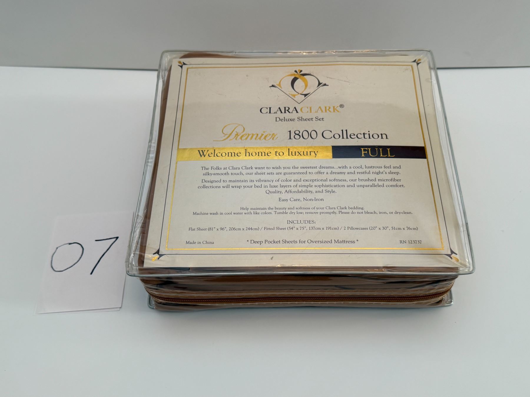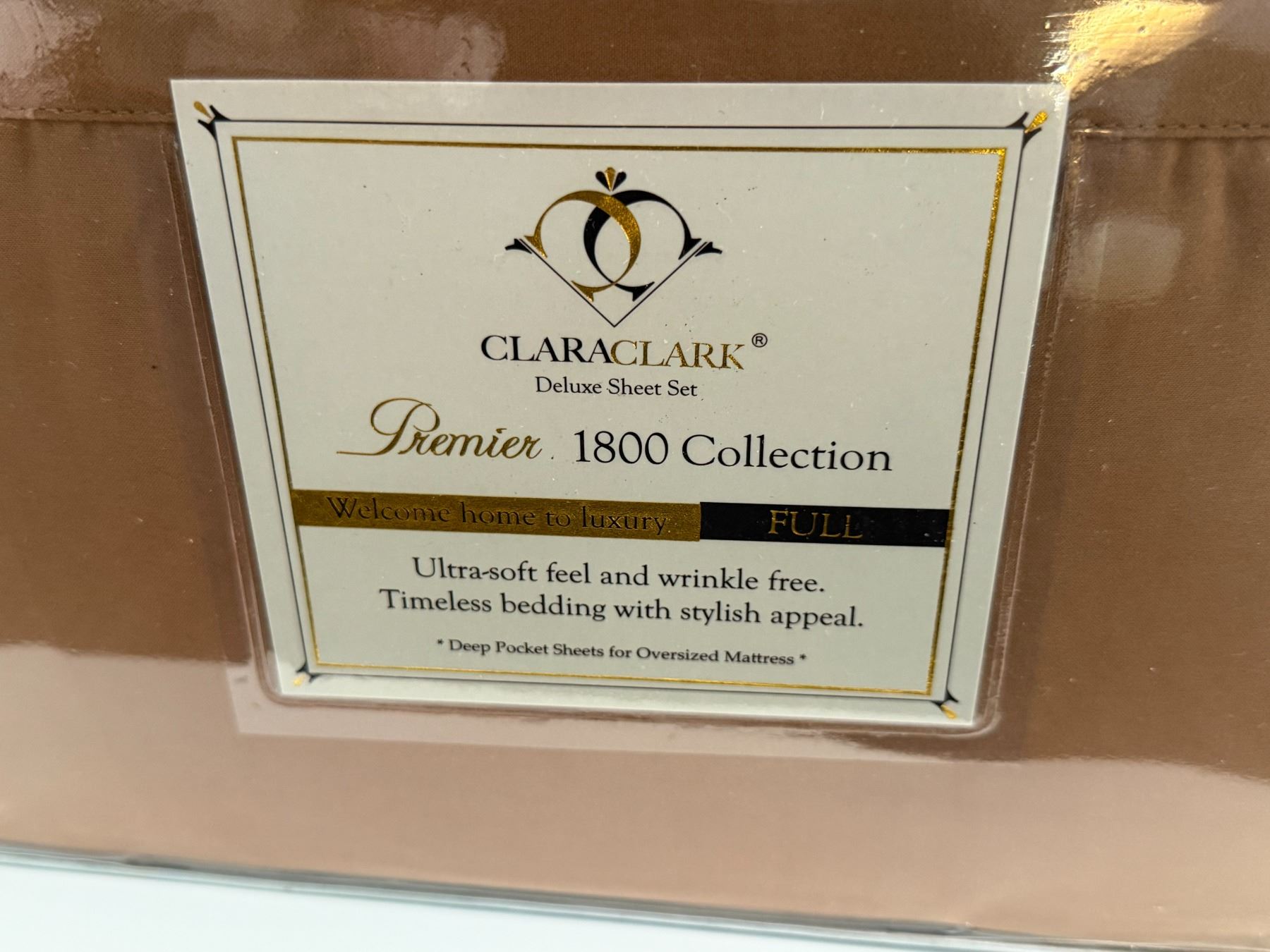 Clara Clark Deluxe Sheet Set - Light Brown Color Full Size (new in package) Includes flat sheet, fitted sheet, 2 pillowcases Ultra Soft feel - wrinkle free Easy care - Non Iron Deep pockets for oversize mattress