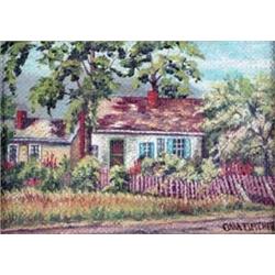 Clara I. Fletcher (b.1900). Oil on Board. Cottage. 6.5" x 9". Framed. Estimate $300 - $500.