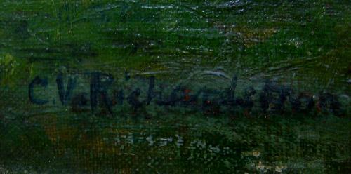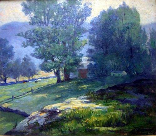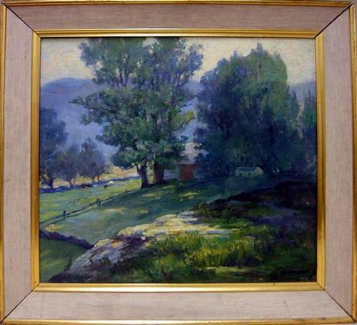 Clara Virginia Richardson oil on canvas; Philadelphia late 19th C.-early 20th C.; landscape with barn and house; signed (L.R.); image size 20" x 23" (no visible defects)