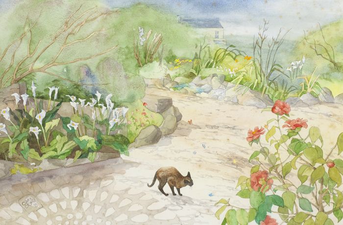 Clare Cryan (b.1936) - PATHWAY WITH BURMESE CAT AND HOUSE IN THE DISTANCE, 1998
