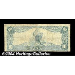 Claremore, OK - $10 1902 Plain Back Fr. 628 The NB of Claremore Ch. # (W)10117The birthplace of American humorist and writer Will Rogers, and the home of his museum and memorial. This is by no means an easy location from which to obtain any note, but this example will win no awards for condition, as the bottom margin is trimmed in, the paper soft, and the back somewhat mottled. Very Good. <BR><BR><B>Important notice:</B> Heritage usually auctions material at the rate of 200-250 lots per hour. On some occasions eBay Live bid software or the Internet may not be able to keep up with the pace of the auction. We recommend placing a realistic absentee bid now as insurance to avoid disappointment. Occasionally the auctioneer may eliminate or reject an eBay Live bid, and the auctioneer may also reopen a lot after the close of the eBay live bidding (usually because we missed an audience bid), and may reject your bid even if it shows you as the winning bidder. By bidding via eBay Live, you agree that Heritage may award the lot to another bidder at its sole discretion under the circumstances described above or any other reasonable circumstances. Since eBay bids are not shown to us until we open the lot on the floor, we treat those bids just like floor bids. In most cases the floor responds before the eBay bid is presented to us, due to Internet lag time, so for consistency we have made it a policy that floor bids are always considered first over tie eBay live bids. Also please note that all Heritage lots purchased through eBay Live carry a 20% Buyer's Premium. Please make sure you read the Terms and Conditions before you bid. <BR><BR><B>IMPORTANT ANNOUNCEMENT ABOUT RESERVES:</B> Heritage now divulges all reserves on its web site 7 days before every auction. If you want to know whether the reserve on this lot has been met, and if not, what the reserve amount is, please visit this lot page on the HeritageCoin.com web site, or email: bid@HeritageGalleries.com