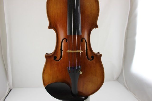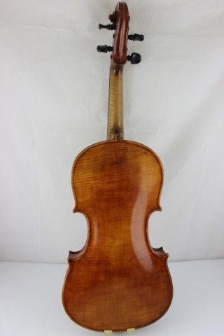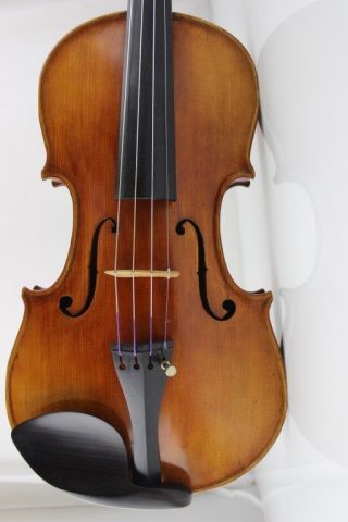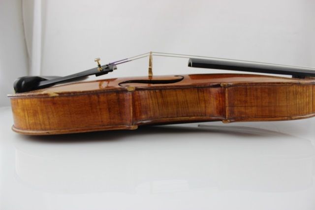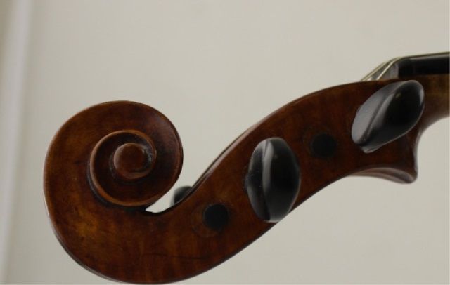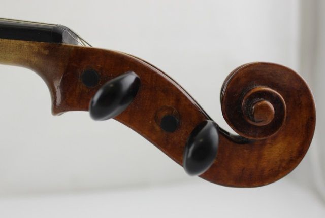 Inlaid purfling, delicately cut 'f' holes elegantly carved scroll