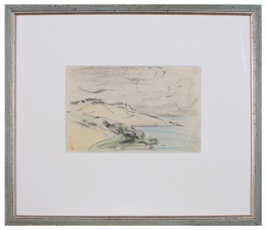Clarence Alphonse Gagnon's "Mountain By The St. Lawrence Sea Way" original study sketch on onion paper. This is an extremely rare piece, as it is signed by Clarence Alphonse Gagnon in the bottom right corner. This has been professionally matted, and custom framed under glass. Image- 5" x 7 1/2". Frame- 12 1/2" x 14 1/2"