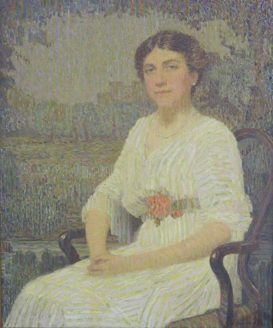 Oil on canvas. Signed lower right. Clarence Kaiser Hinkle, American (1880-1960). Approx. 36" H x 30" W unframed, 43" H x 37" W framed.