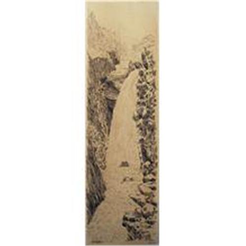 Clarence Leach, Etching, "Rainbow Falls", 9 7/8" x 3", signed in plate