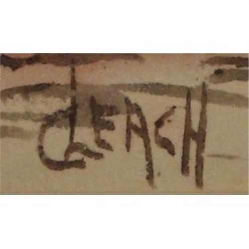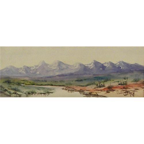 Clarence Leach, Watercolor, "Woodman Valley", sight size 2 1/2" x 6 3/4", signed lower right