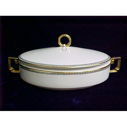 <table width="100%" border="0" cellspacing="0" cellpadding="4"><tr><td><em> </em></td></tr><tr> <td width="100%"> This gorgeous oval covered vegetable dish was manufactured by Heinrich & Co. The pattern is called Claridge. It is in perfect condiion. The gold trim is exquisite. The dish is marked as seen in image 4. </td></tr><tr> <td> </td></tr><tr> <td>Reference #: 1626_10099</td></tr><tr><td>Condition:Excellent</td></tr><tr><td>Year:Unknown</td></tr><tr><td>Country:Bavaria</td></tr><tr><td>Maker:Heinrich & Co.</td></tr><tr><td>Width:length 10"</td></tr><tr><td>Title:Claridge Oval Covered Vegetable Dish by</td></tr><tr><td>Materials:Porcelain</td></tr><tr><td>Location:Westerville, Ohio</td></tr></table>