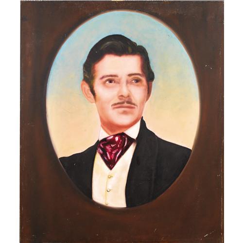 <B>Clark Gable Portrait.</B></I> This 41.5" x 48" oil-on-wood painting of Clark Gable as Rhett Butler in <I>Gone With the Wind</B></I> was created circa 1940-41 for the first roadshow screenings of the movie, where it was displayed in theater lobbies alongside a matching Vivien Leigh/Scarlet O'Hara painting (now missing). In Very Fine condition with a few dings and a crayon mark.<BR><BR><b>Shipping:</b> Framed - with Glass, Large (<a target="_blank" href="http://www.heritageauctions.com/common/shipping.php">view shipping information</a>) <BR><BR><B>Important