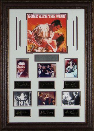 Gone with the Wind is a 1939 American period romance film adapted from Margaret Mitchell's Pulitzer-winning 1936 novel. The picture was produced by David O. Selznick and directed by Victor Fleming from a screenplay by Sidney Howard. Set in the 19th-century American South, the film stars Clark Gable, Vivien Leigh, Leslie Howard, Olivia de Havilland and Hattie McDaniel, and tells a story of the American Civil War and Reconstruction era from a white Southern point of view. This is an Unsigned Publicity Masterprint with museum Quality Leather Framed as shown to an overall size of 33x24 with the Laser Engraved Signatures (Replica Autographs) of Clark Gable, Vivien Leigh, Hattie McDaniel, Butterfly McQueen, Leslie Howard, and Olivia de Havilland. The perfect addition to complement any Home Theater Collection.