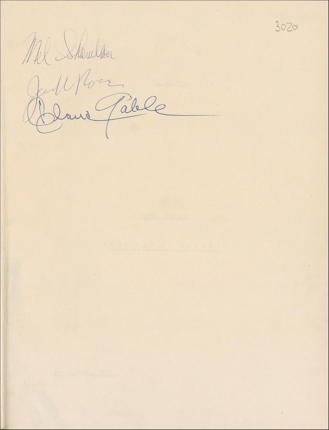 Hardbound final script from the film It Started In Naples, 8.5 x 11, 112 pages (with last page being an alternate ending), signed on the first free end page in blue ballpoint by Clark Gable as well as director Mel Shavelson and producer Jack Rose. In fine condition.